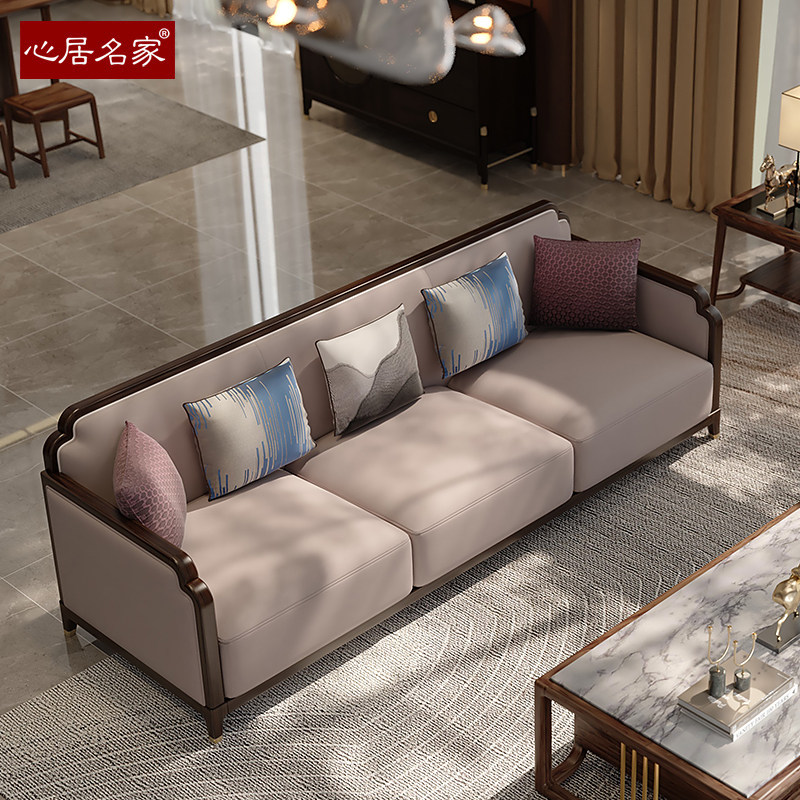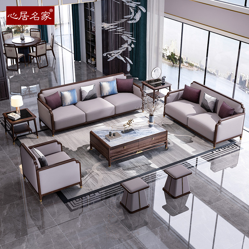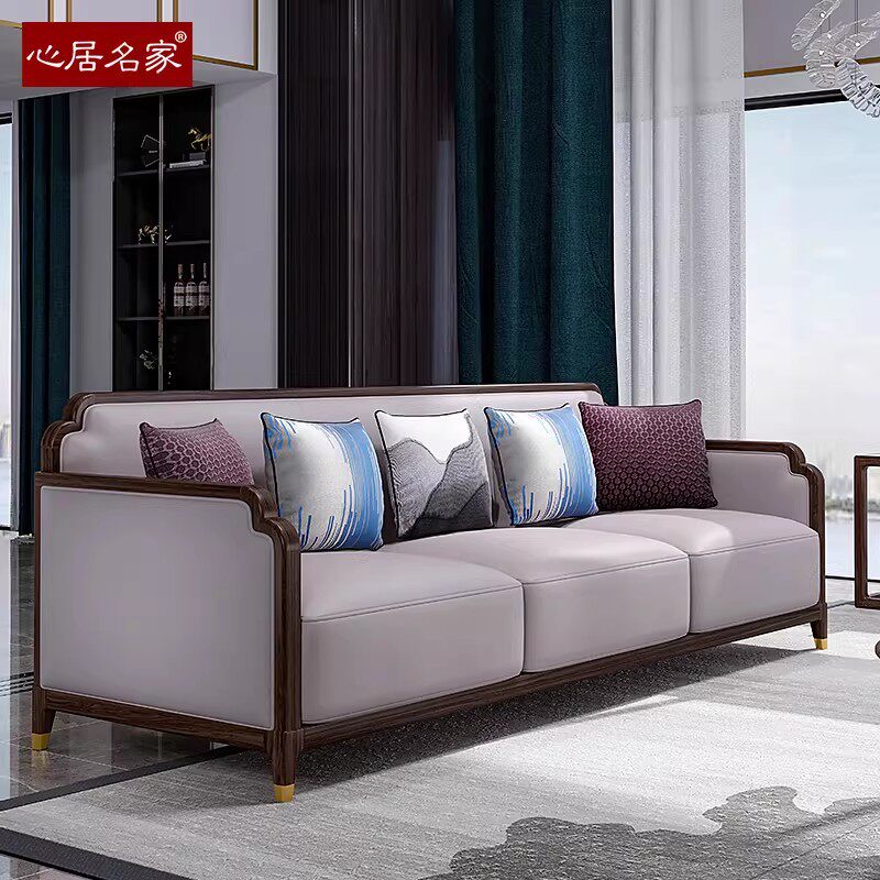 心居名家轻奢实木沙发现代中式大户型客厅家具乌金木组合头层牛皮