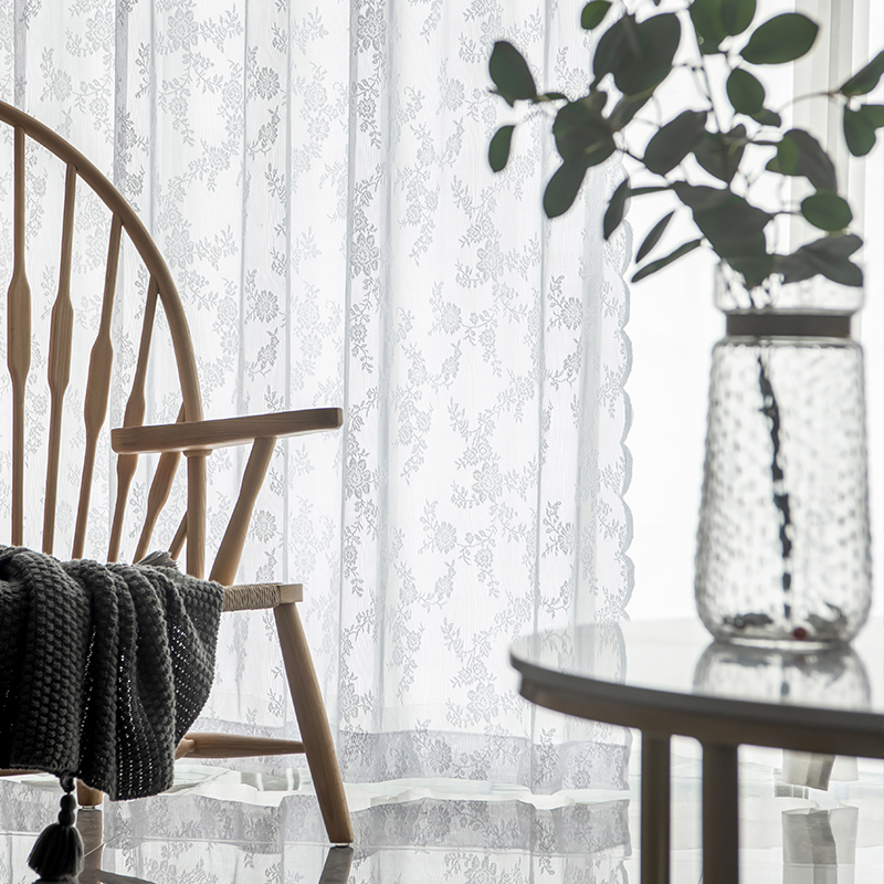 白色蕾丝窗帘纱窗纱帘透光田园半帘短帘门帘隔断帘法式免打孔安装