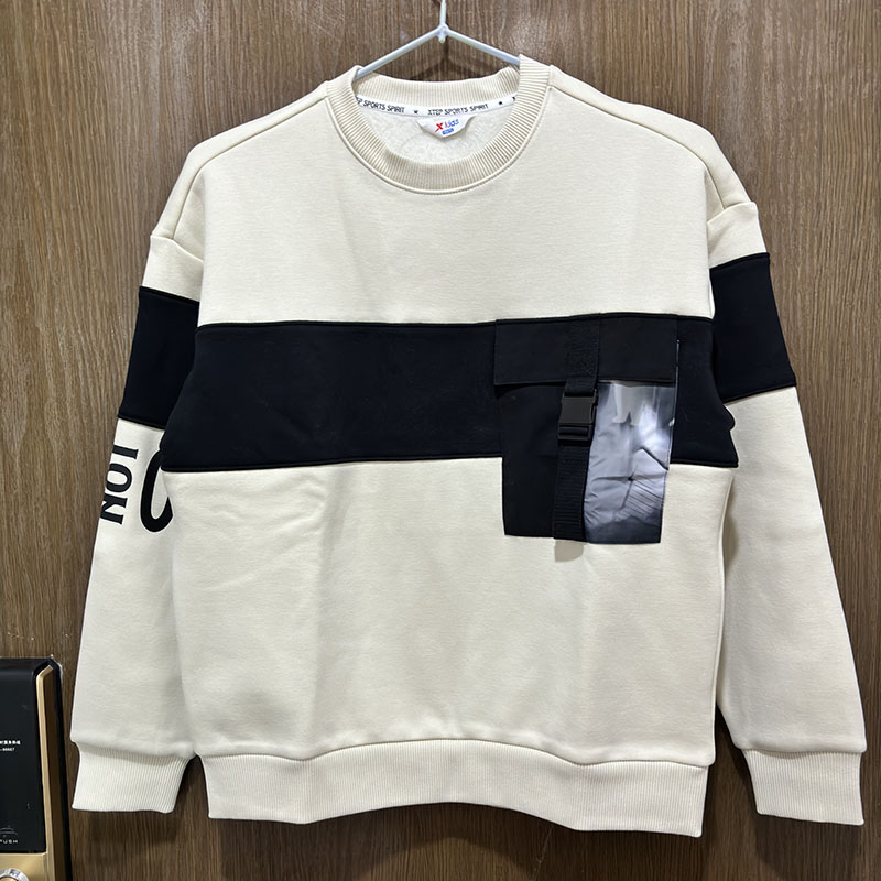 特步儿童正品冬季休闲圆领拼色加绒保暖男童运动卫衣678425204422