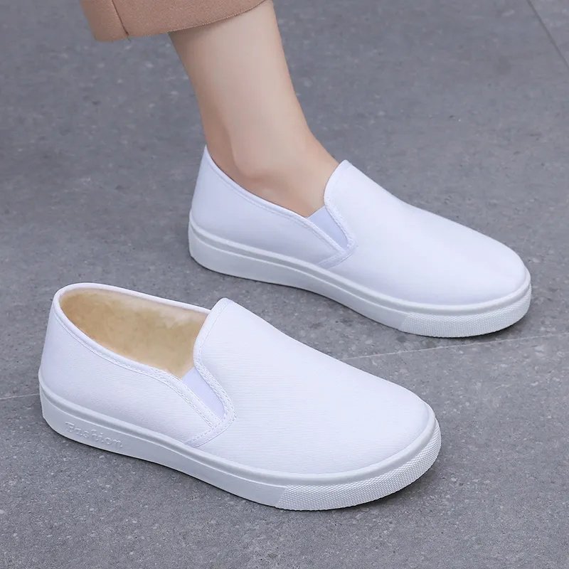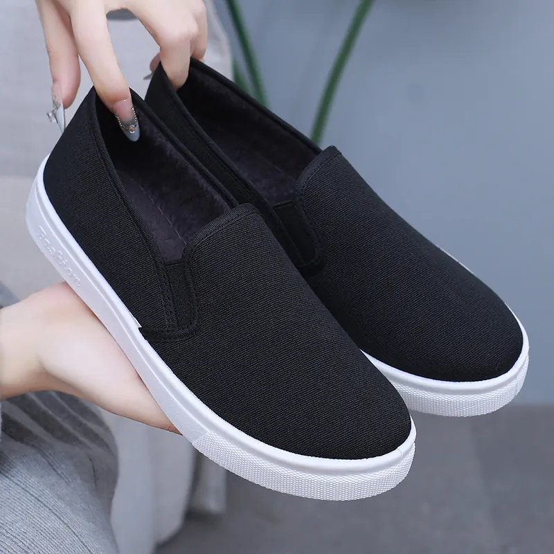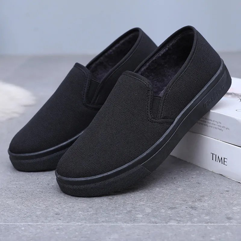 棉鞋男女冬季加绒加厚保暖老北京布鞋软底防滑纯黑白色上班工作鞋