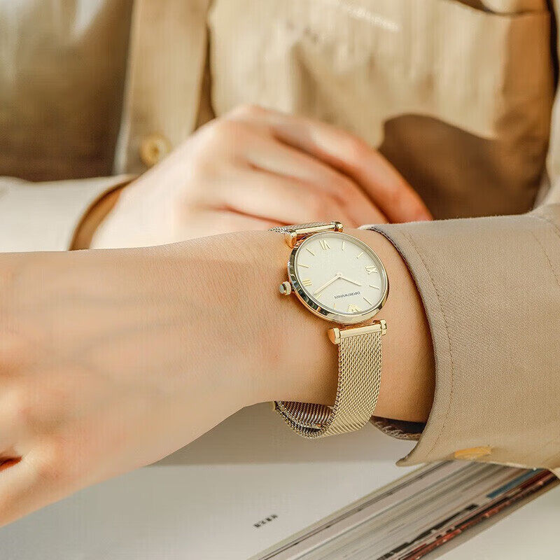 Armani阿玛尼官方手表女 轻奢金色石英防水女士手表AR1957