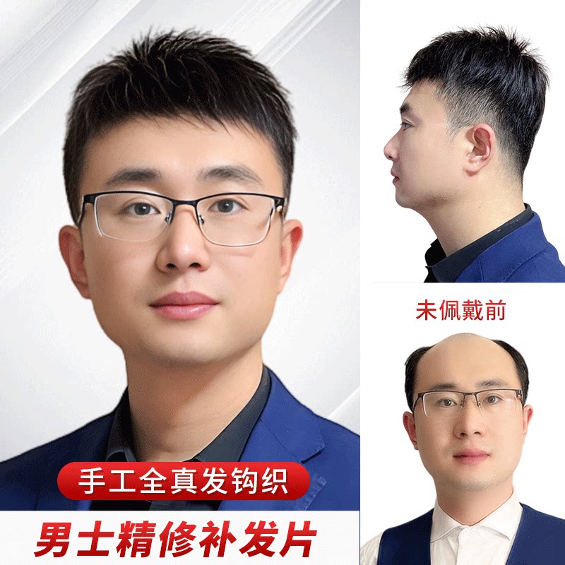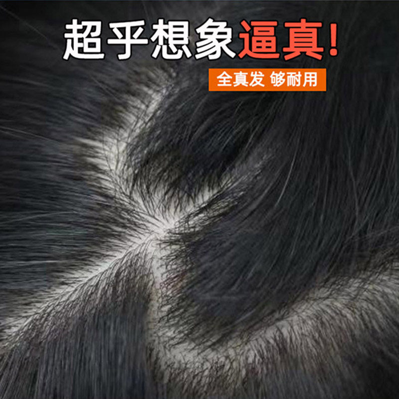 假发男士双递针真发仿真隐形头顶补发片全手织地中海秃头男生补发