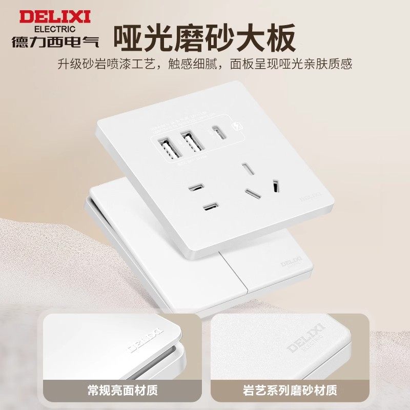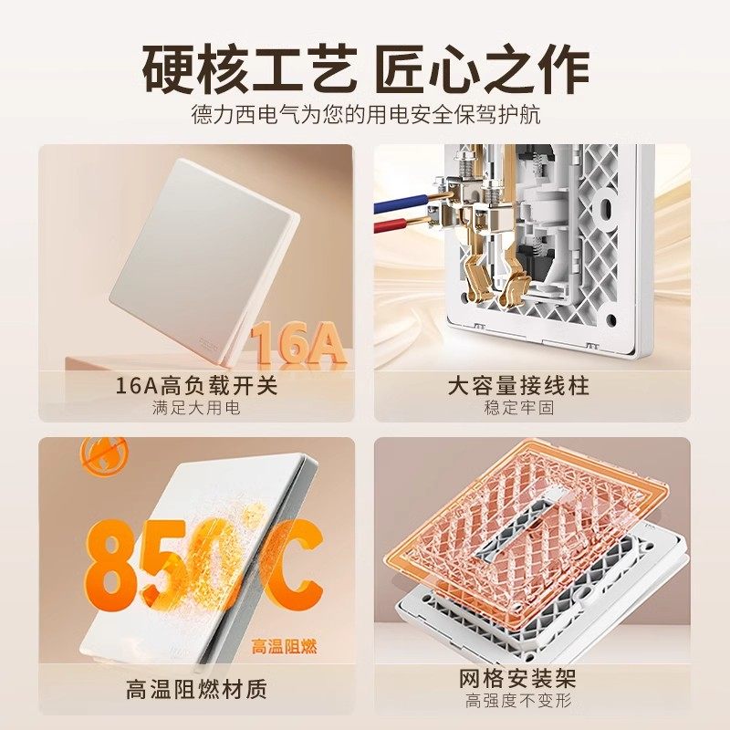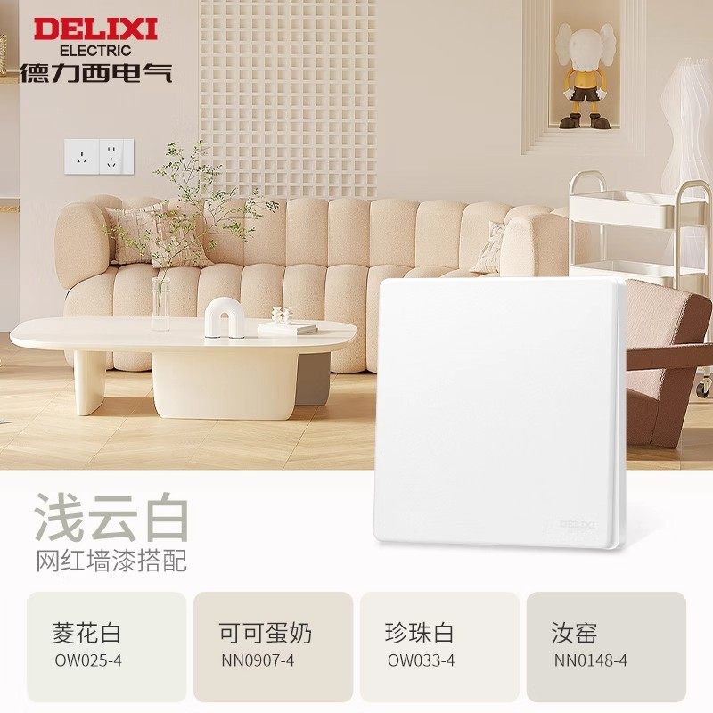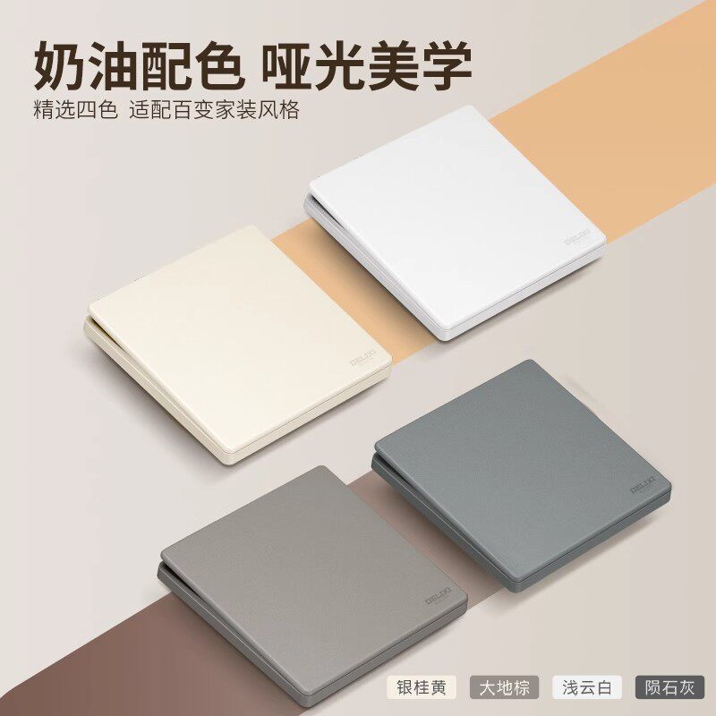 德力西官方旗舰店奶油风磨砂哑光开关插座暗装大面板827浅云白色