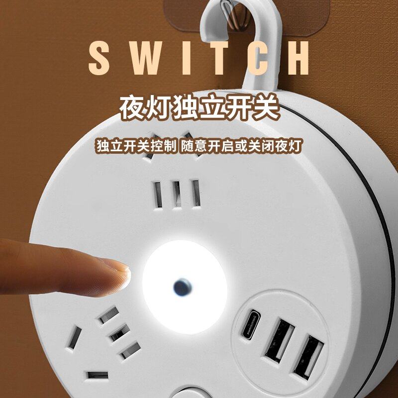 正品带夜灯可伸缩插排家用插座多功能USB插线板插板头接线板