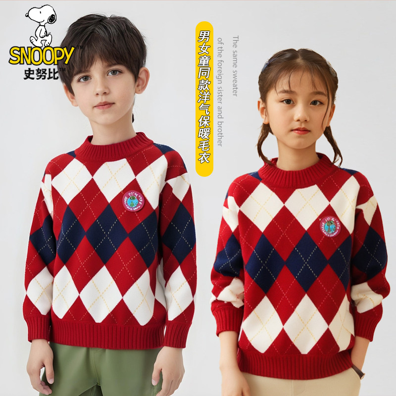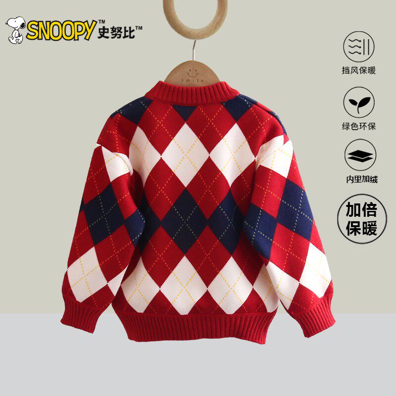 史努比男女童毛衣加厚保暖儿童秋冬新款针织衫中小童加绒打底上衣