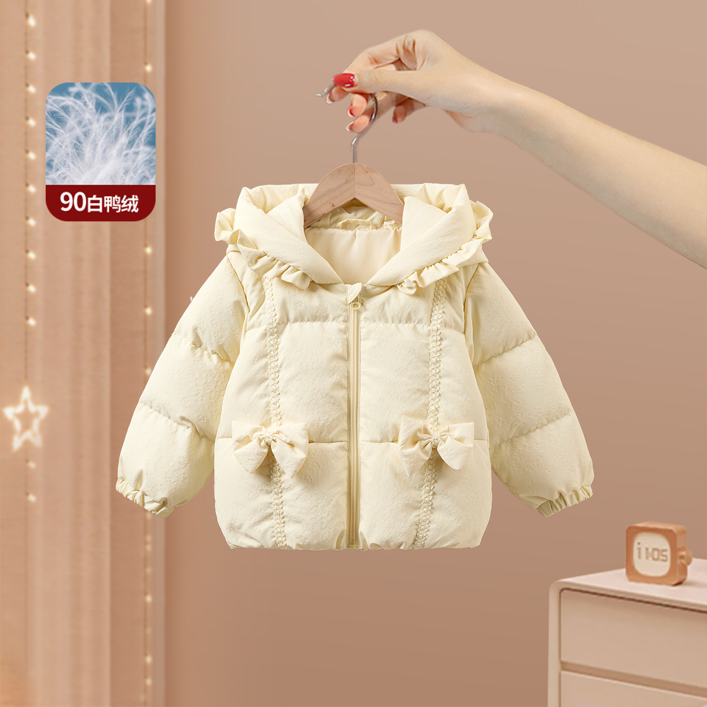 女童轻薄羽绒服90白鸭绒小童冬装2025新款洋气女宝宝儿童冬季外套
