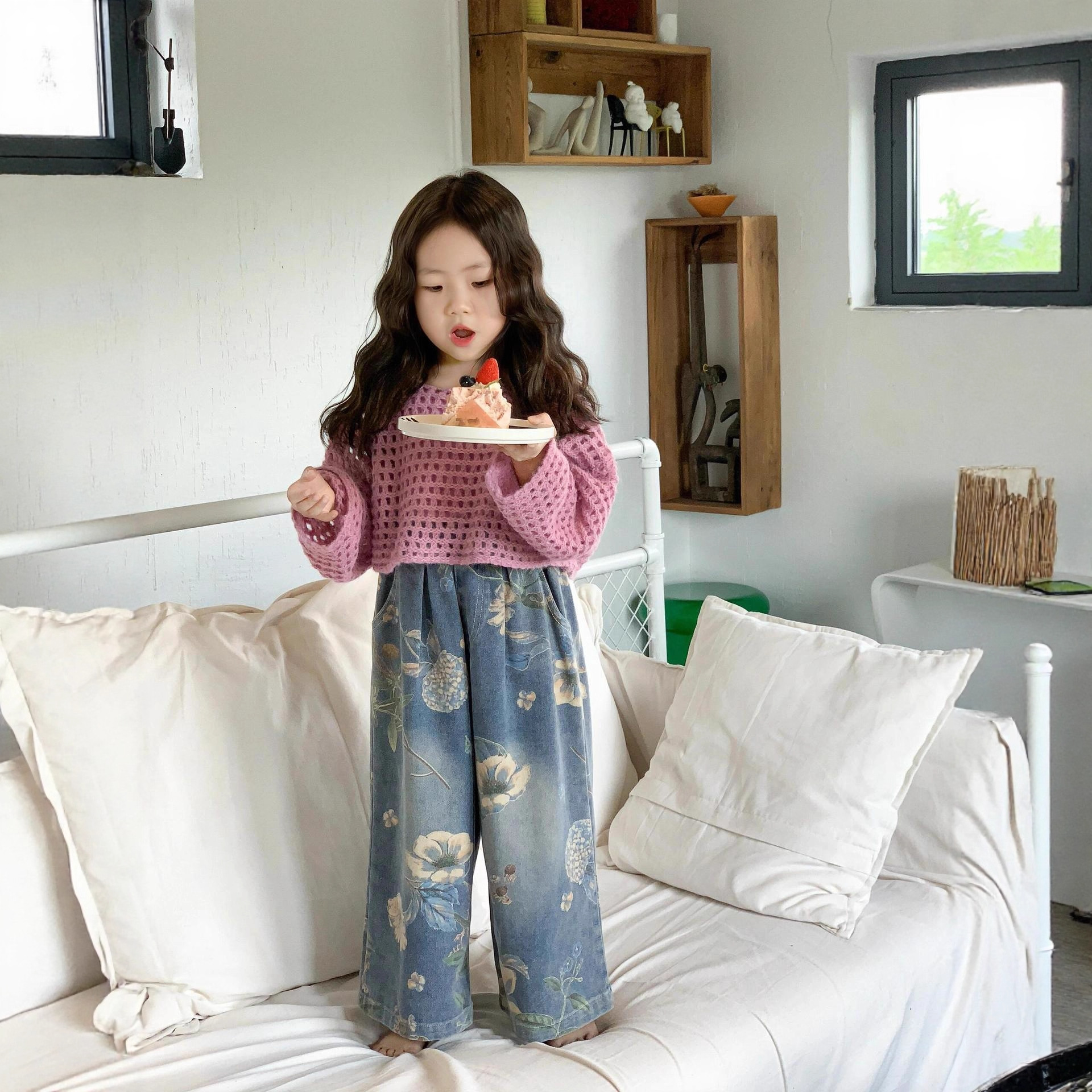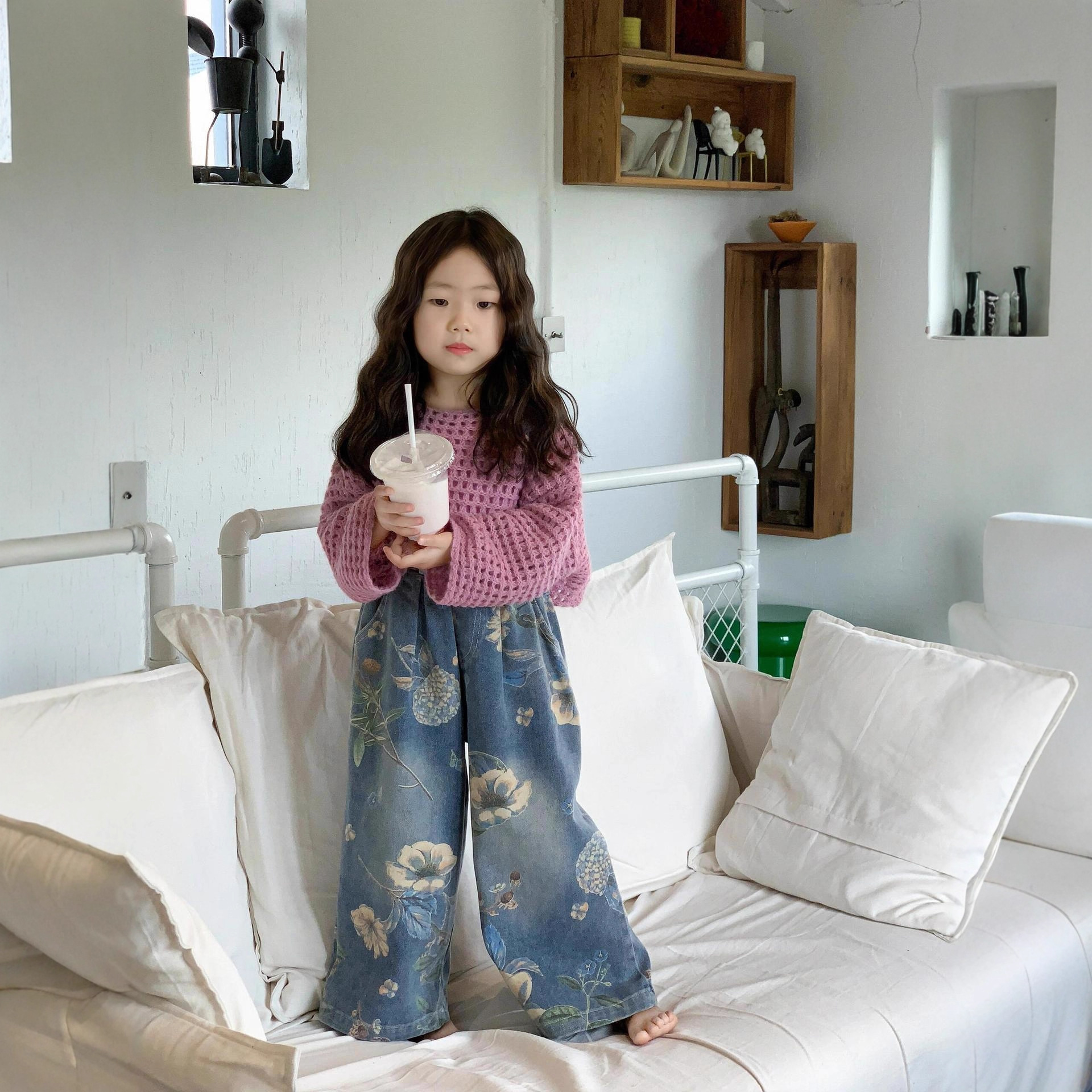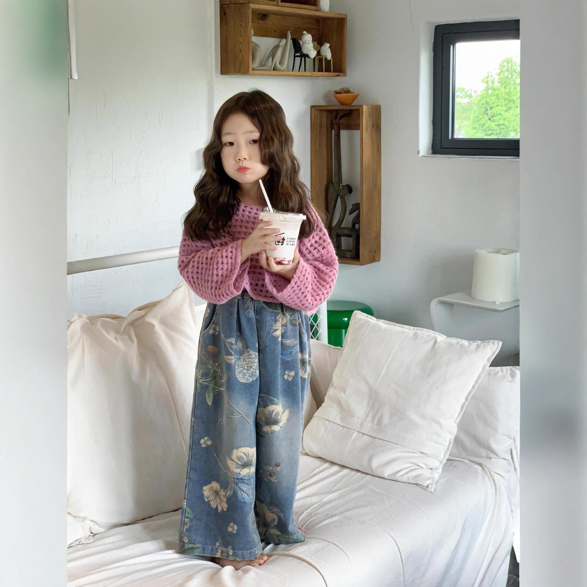 女童超好看秋装镂空毛衣牛仔裤套装2025春季洋气潮酷穿搭