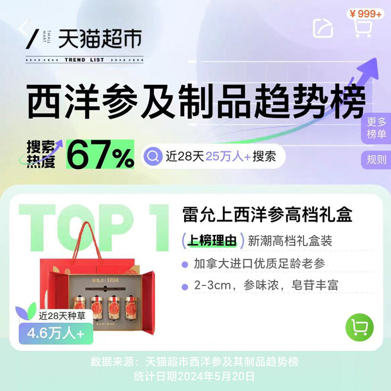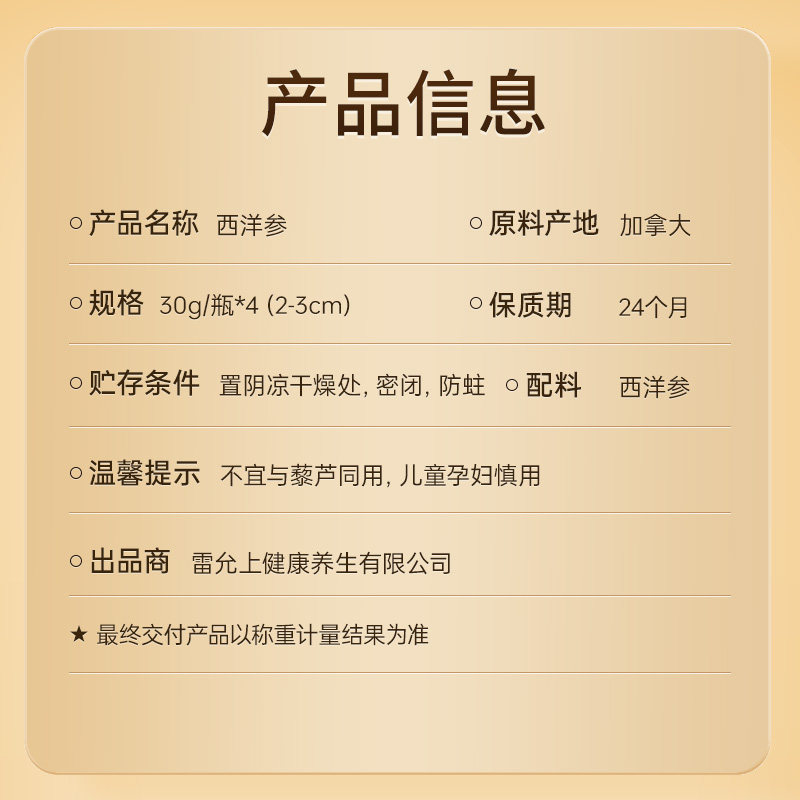 【年货礼盒】西洋参礼盒雷允上西洋参2-3cm超大片加拿大进口送礼