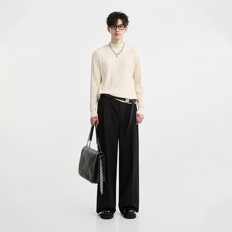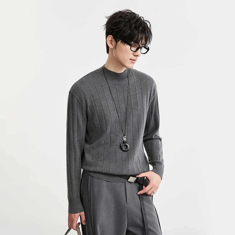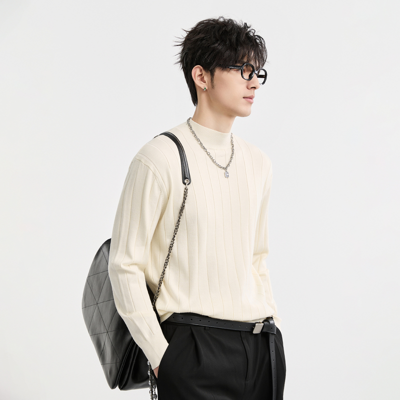 {含山羊绒}伯爵卓尔25秋冬半高领针织打底衫男士纯色圆领套头毛衣