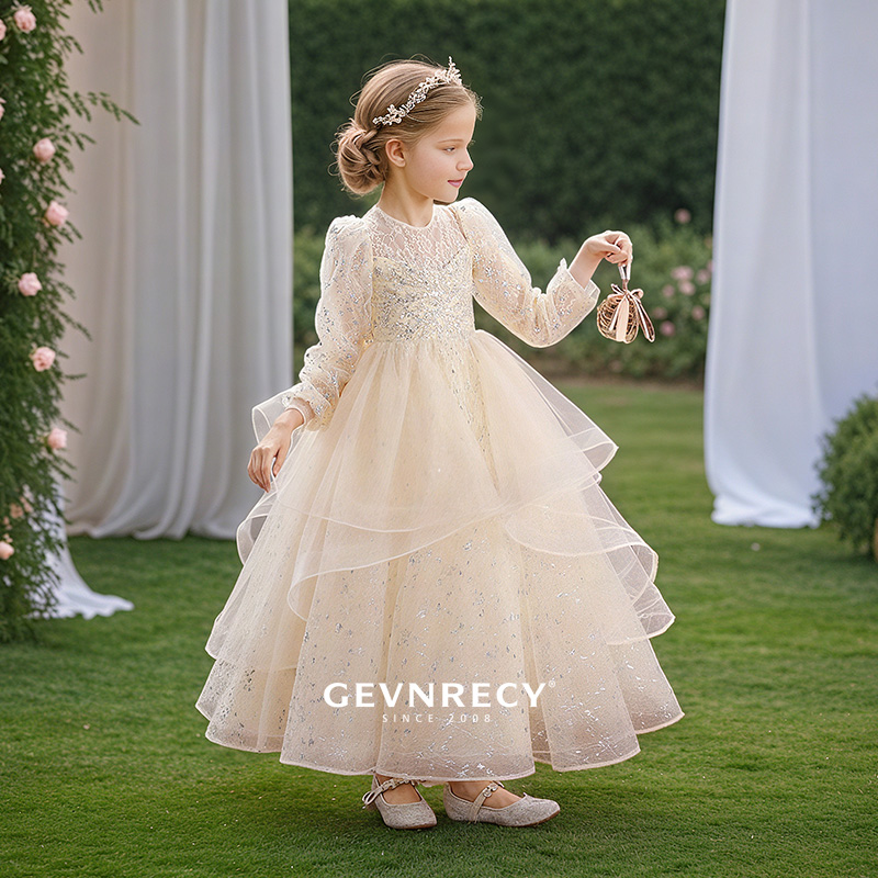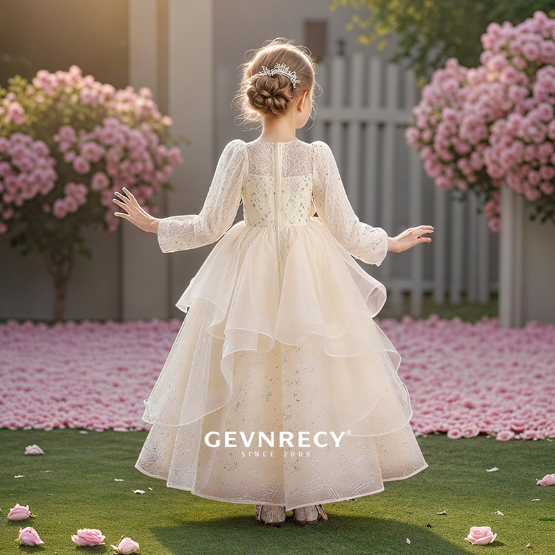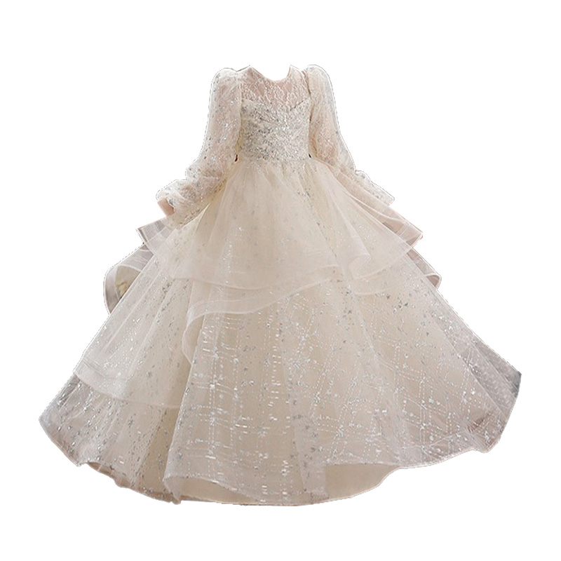 女童礼服裙高端长袖儿童蓬蓬纱生日公主裙小女孩钢琴主持人演出服