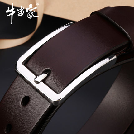 牛当家腰带男士针扣皮带真皮头层牛皮不锈钢扣休闲中年裤带青年潮