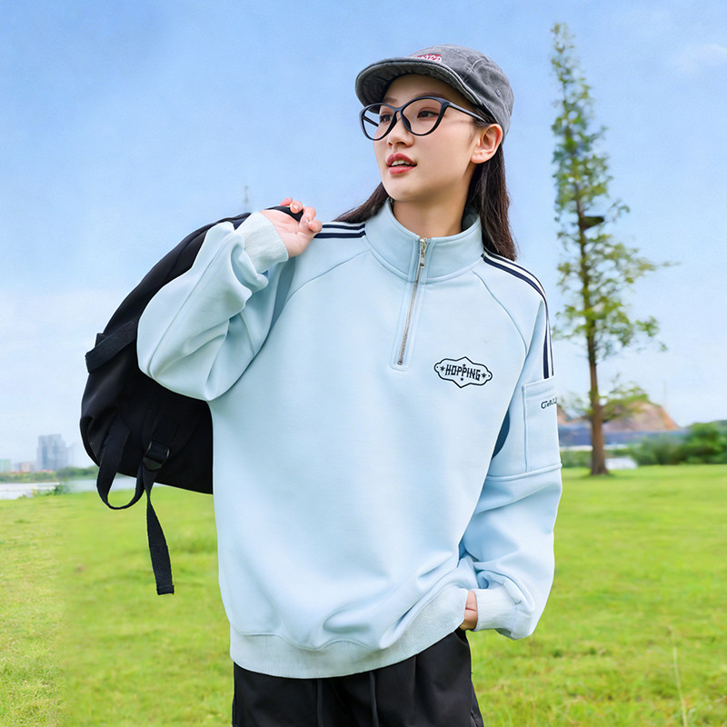 初中生卫衣春季2026新款少女洋气休闲立领半拉链大童高中学生上衣