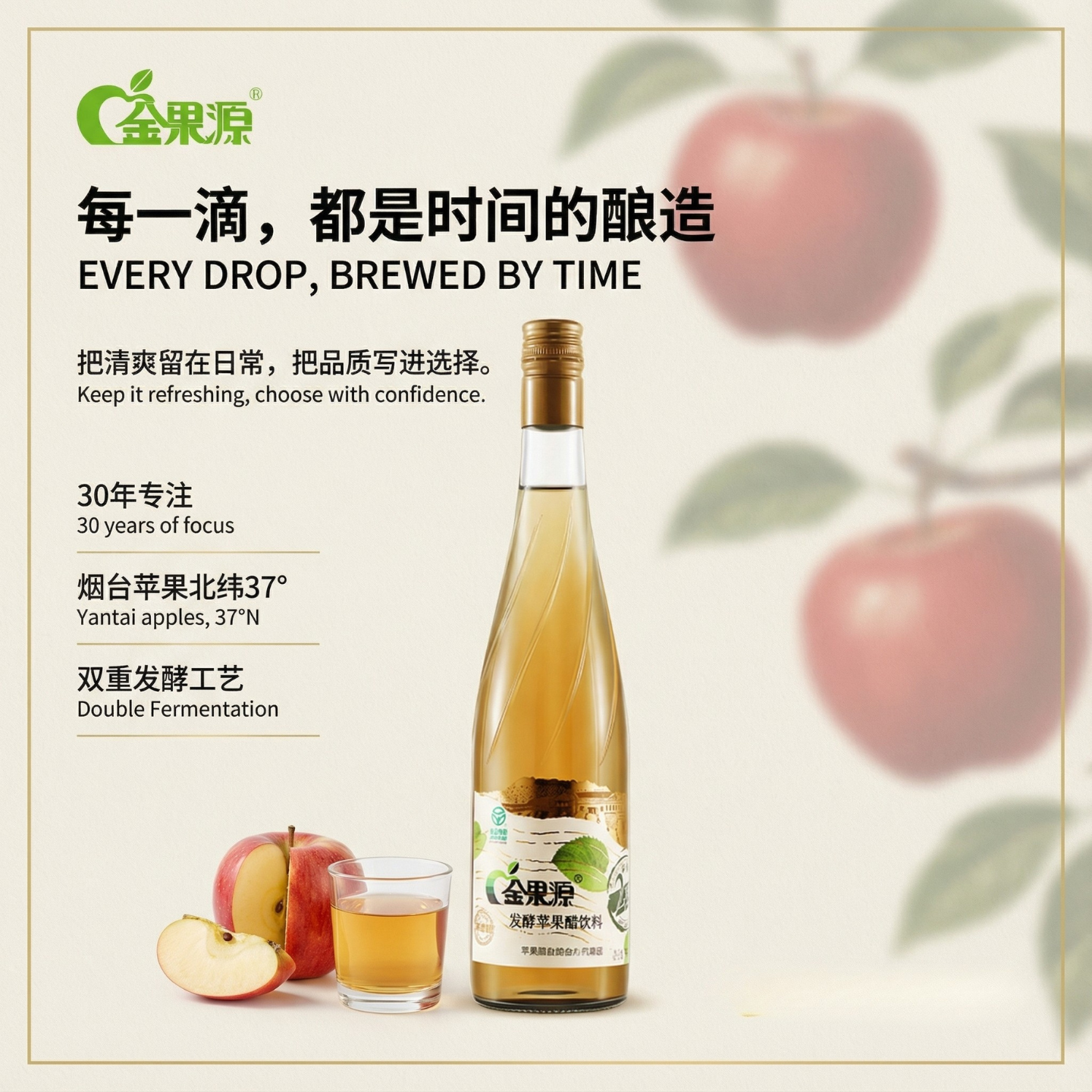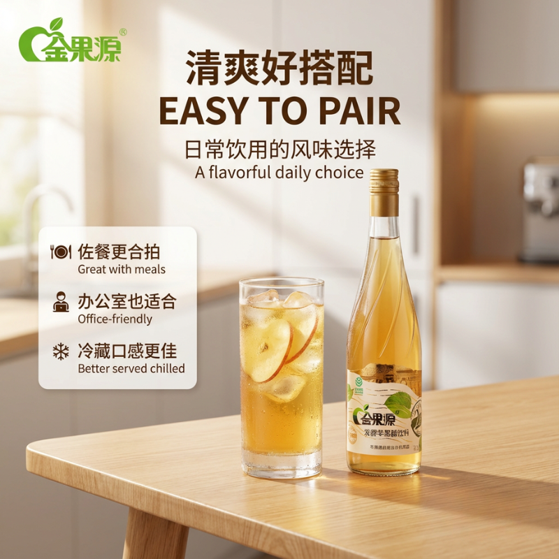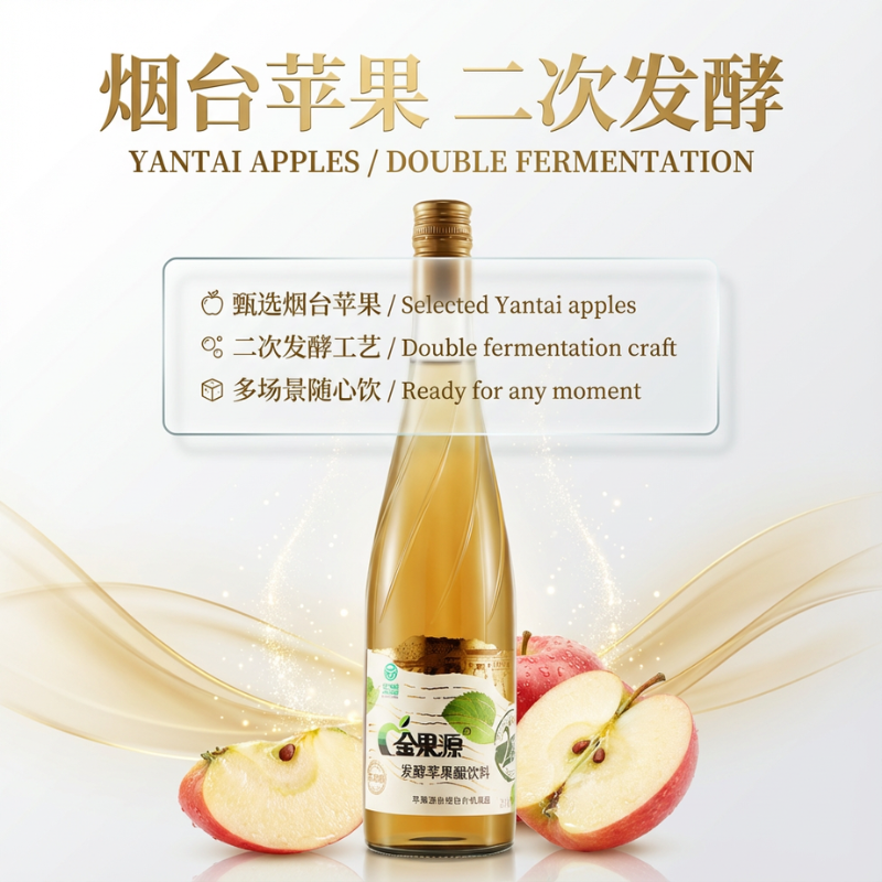 金果源 果汁二次发酵苹果醋饮料整箱高端650ml*6玻璃大瓶装饮品