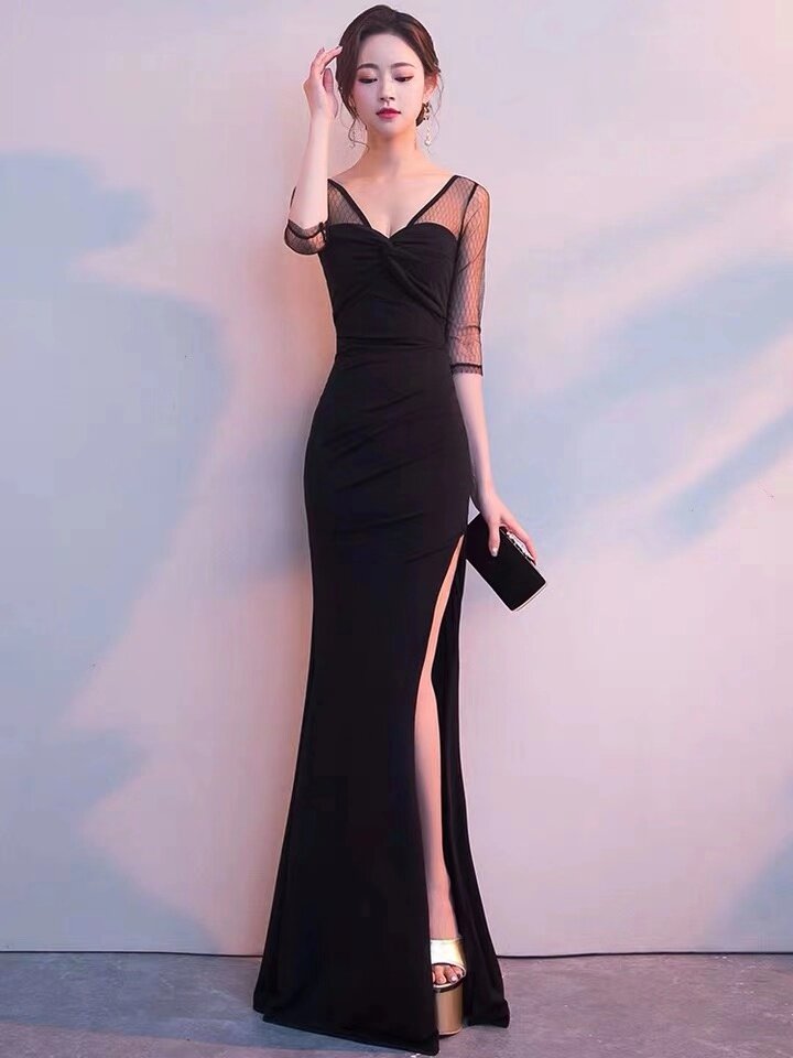 连衣裙2025新款性感低胸显瘦蕾丝鱼尾长裙主持人宴会年会晚礼服女