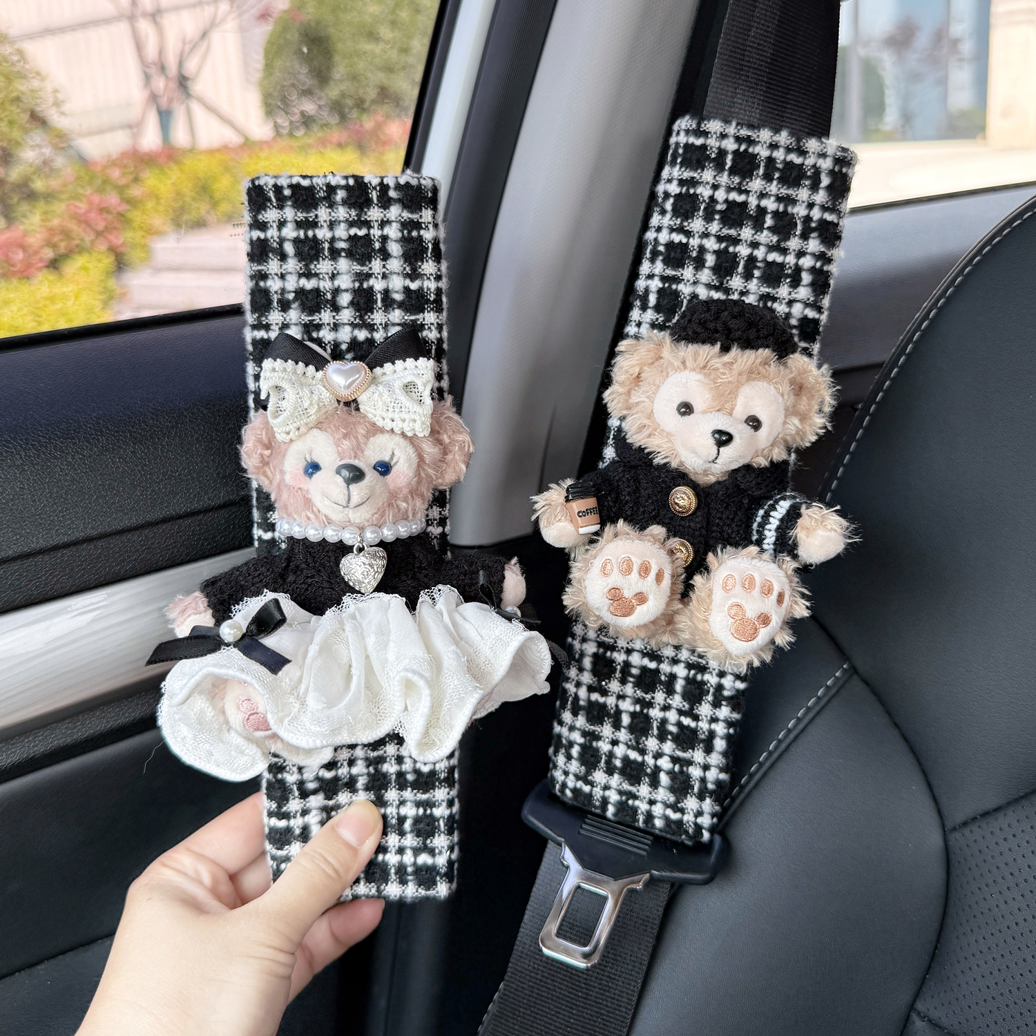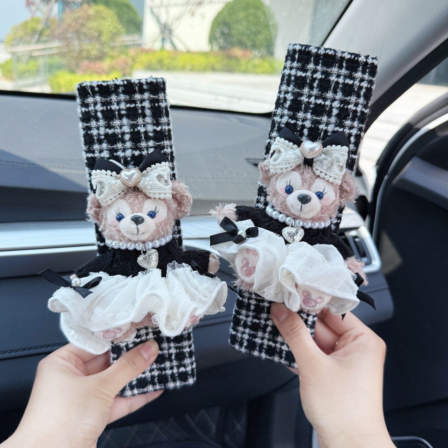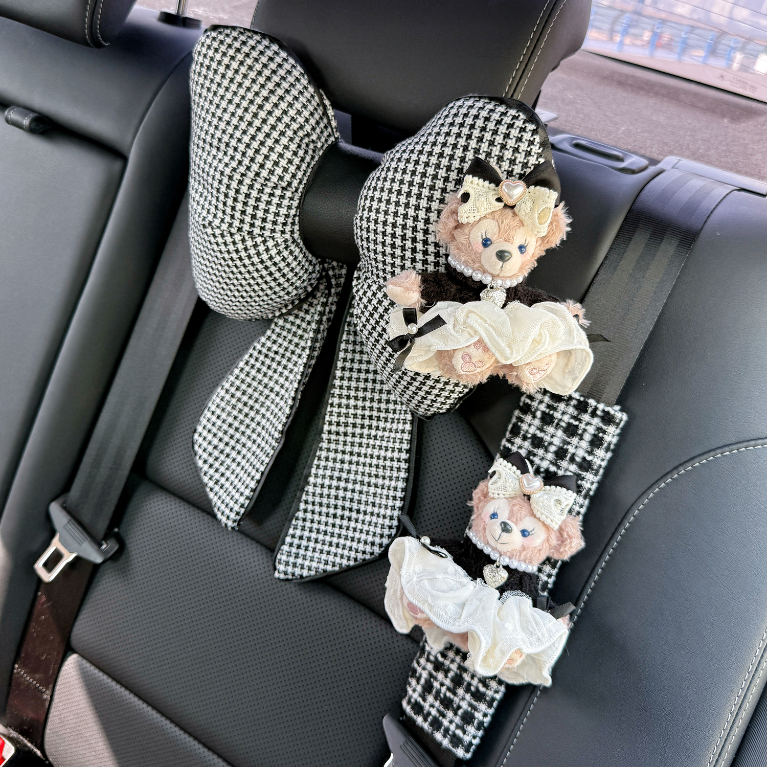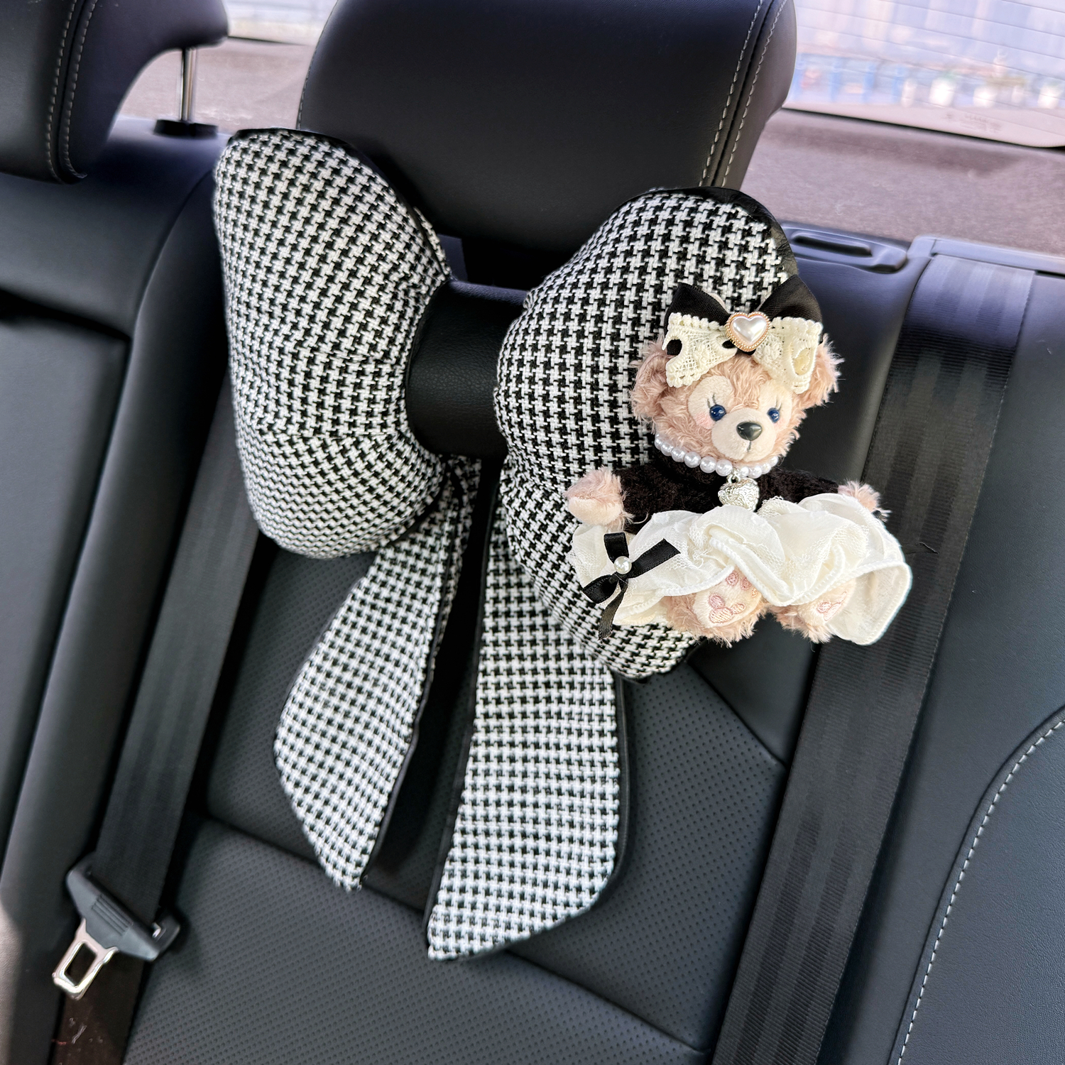 汽车头枕蝴蝶结小香风雪莉玫千鸟格安全带护肩套车载座椅四季通用