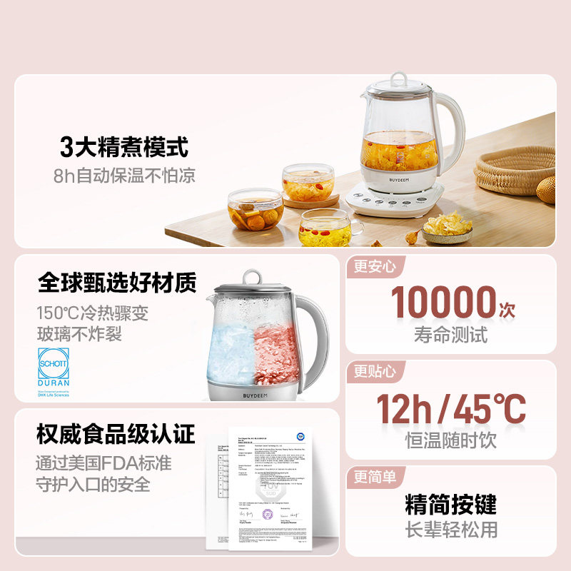 [阿里自营]北鼎养生壶家用炖煮一体K123多功能小型办公室花茶250
