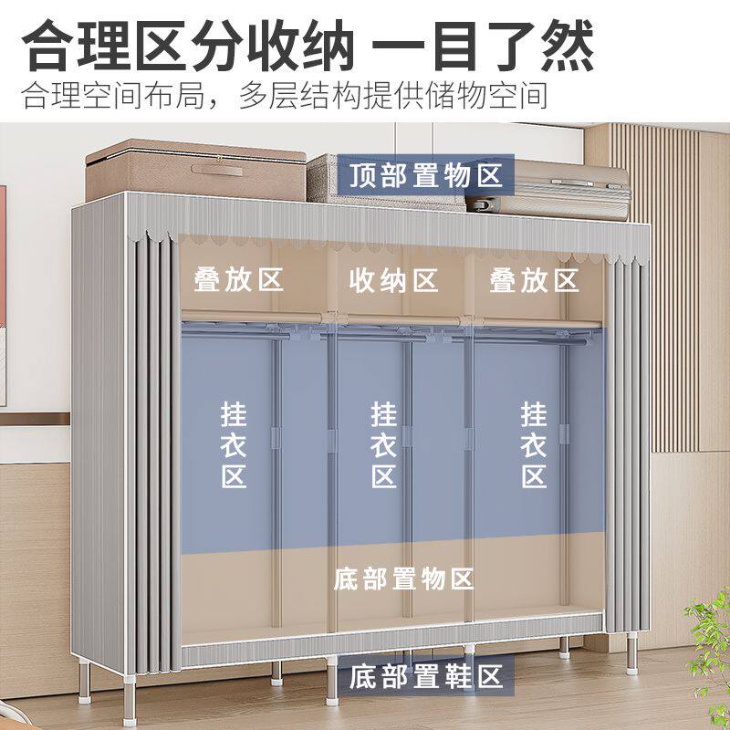 衣柜全钢架特厚加粗家用卧室简易衣柜拼接加厚爆款布衣柜结实耐用