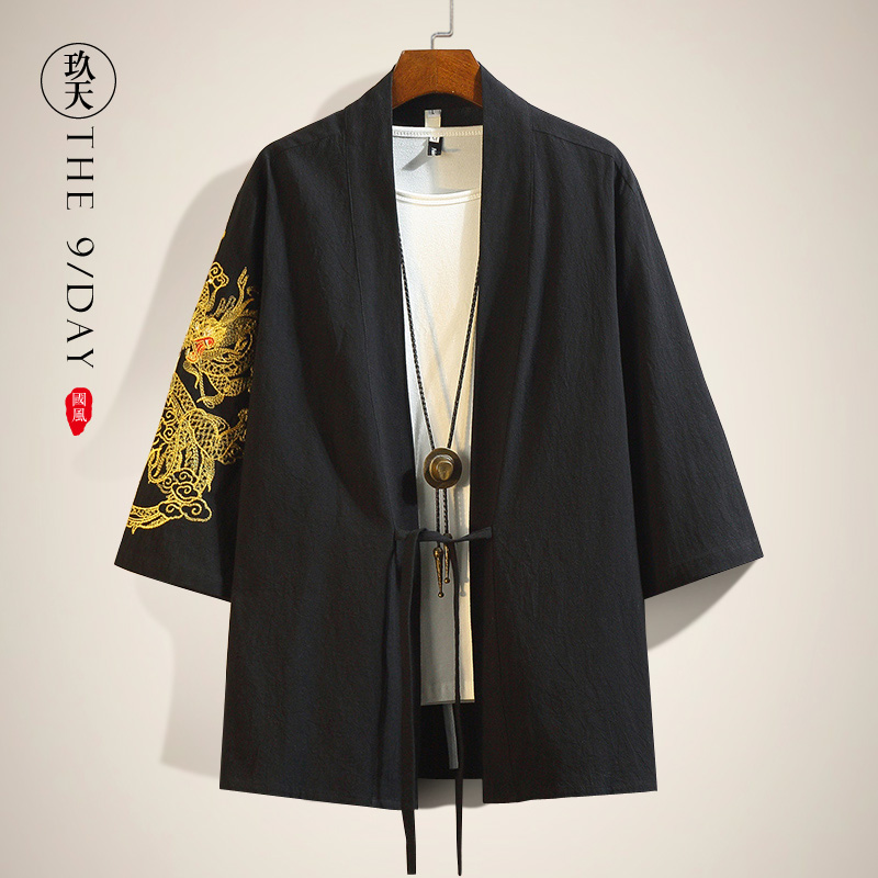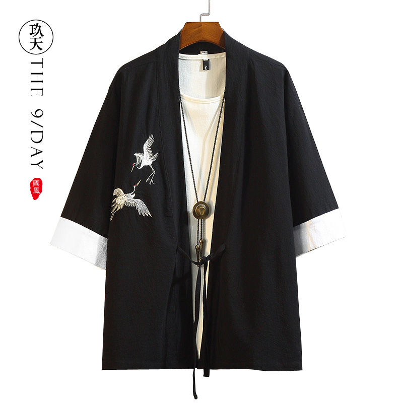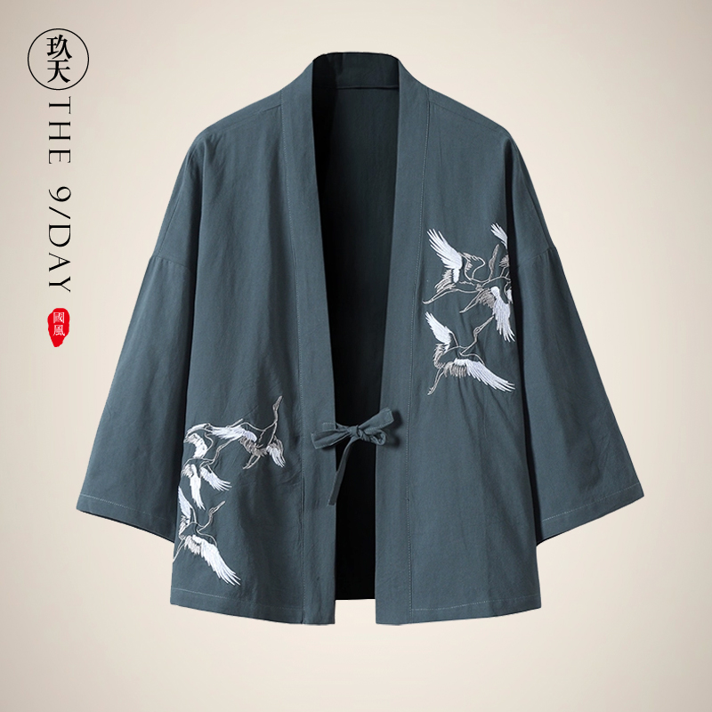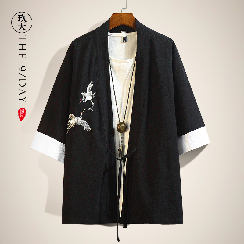 汉服男古装宽松棉麻居士道袍道服古风中国风仙鹤龙纹刺绣亚麻外套