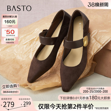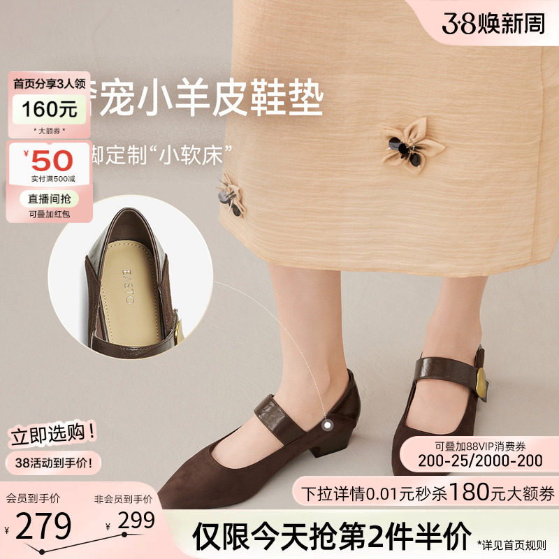 百思图秋新款商场同款复古魔术贴玛丽珍鞋尖头女单鞋F5176CQ5