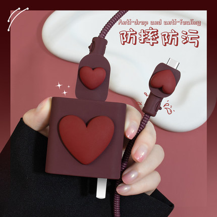 适用华为mate60pro充电器保护套88w缠绕线mate60Pro P60Pro 66w数据线防折断两端线套mate60手机壳纯色爱心款