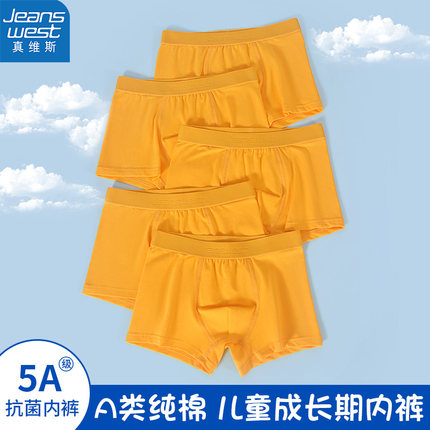 真维斯儿童内裤男童纯棉抑菌平角裤黄色全棉不夹PP中大童男孩短裤
