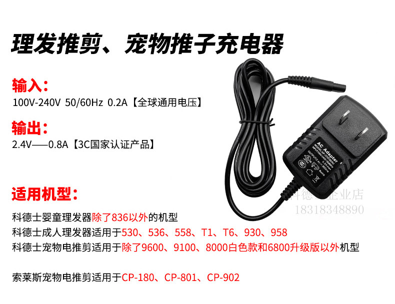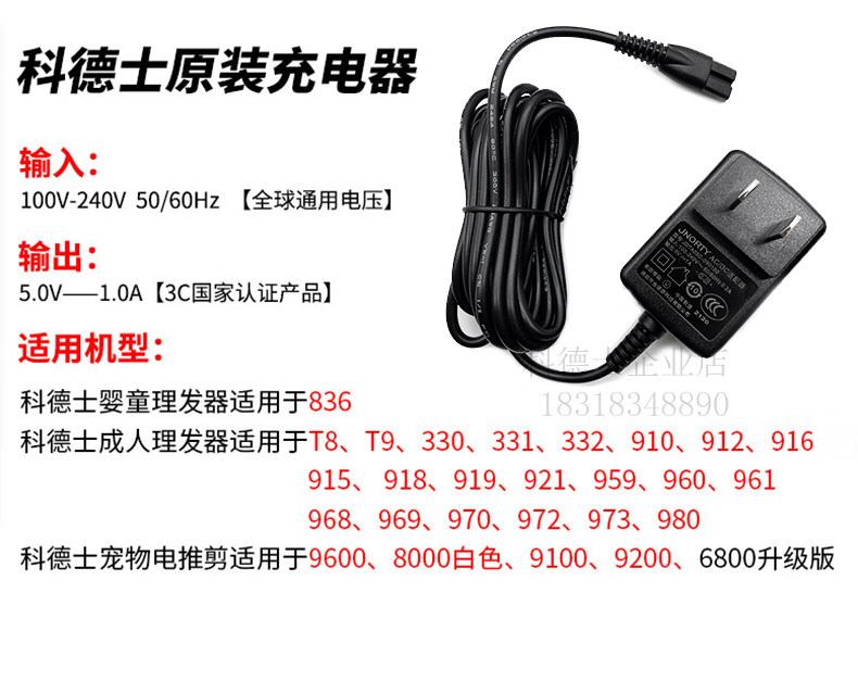科德士电推剪原装充电器线961/960/912/916/918/T9/968/8000/3000