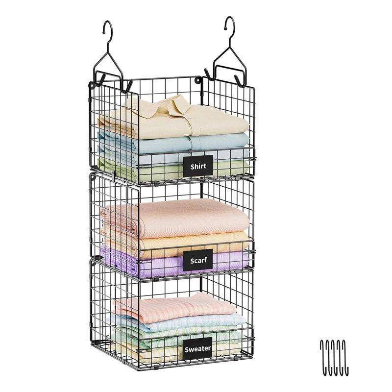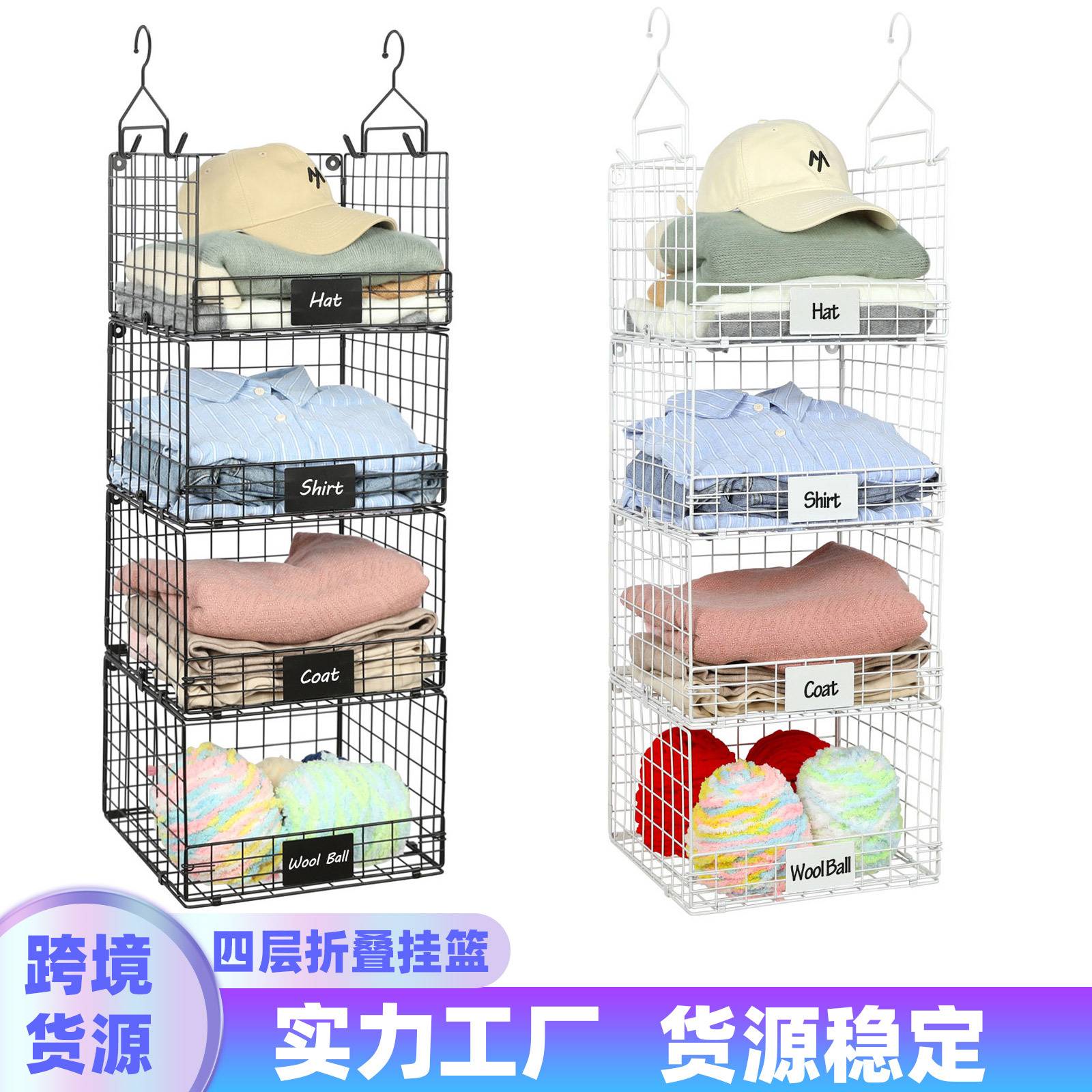亚马逊跨境可折叠多层置物架厨房客厅衣柜收纳架挂壁式收纳篮挂篮