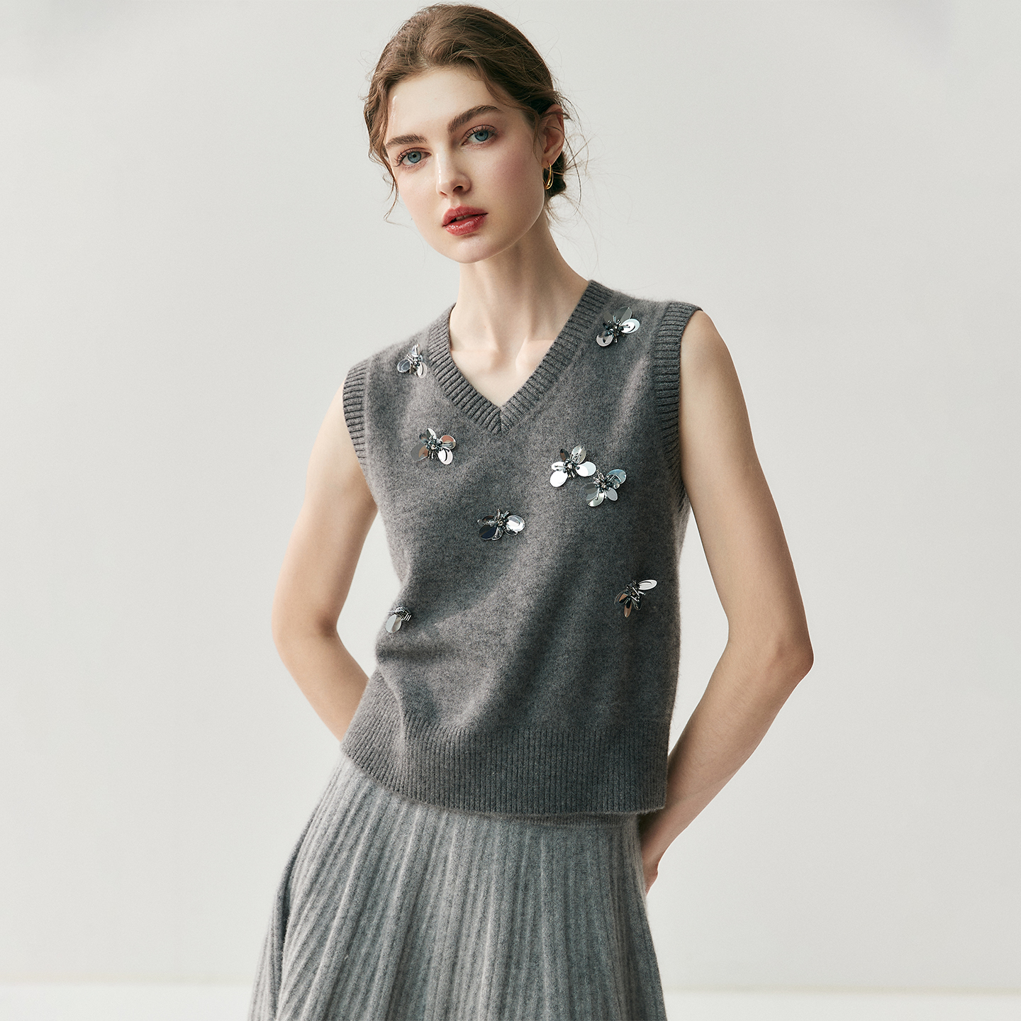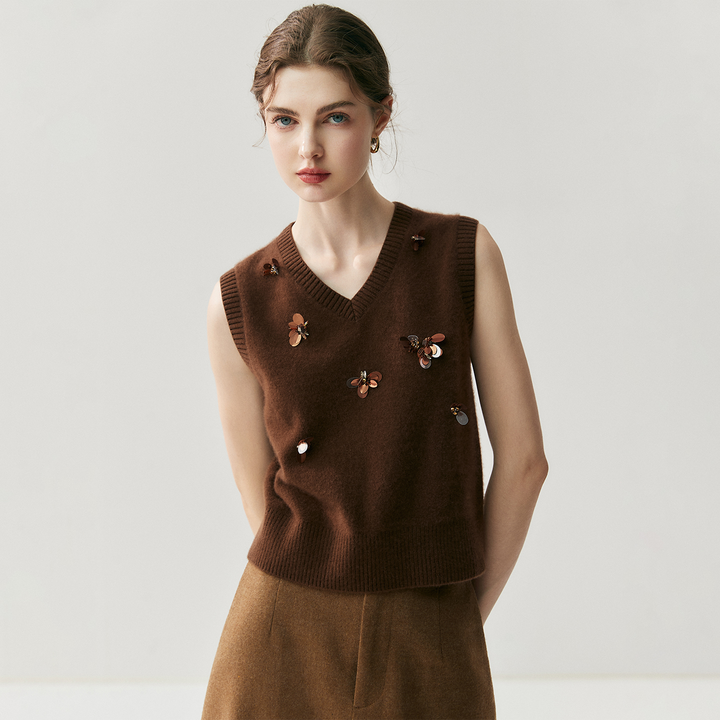 蝴蝶自来~小香风山羊绒针织开衫马甲两件套女25秋冬新款毛衣外套