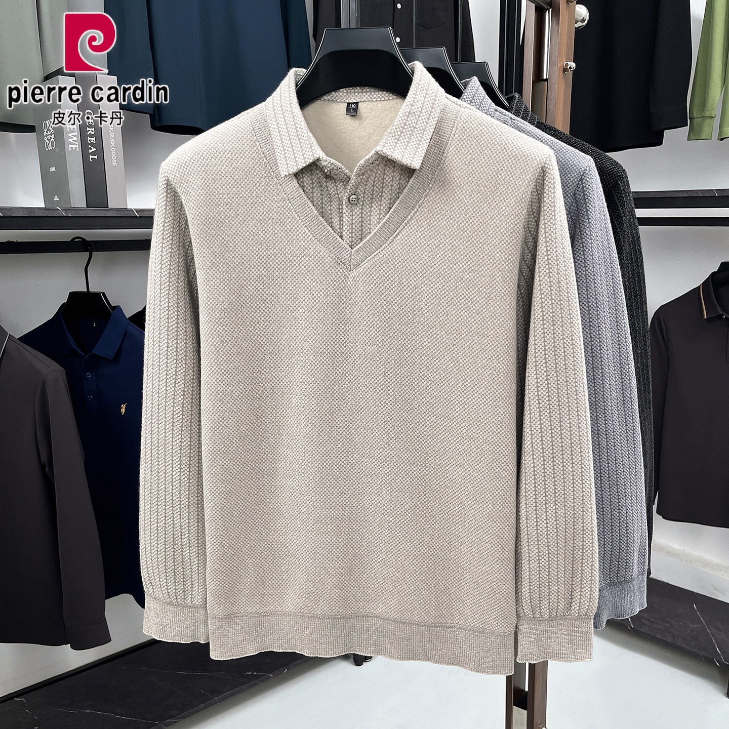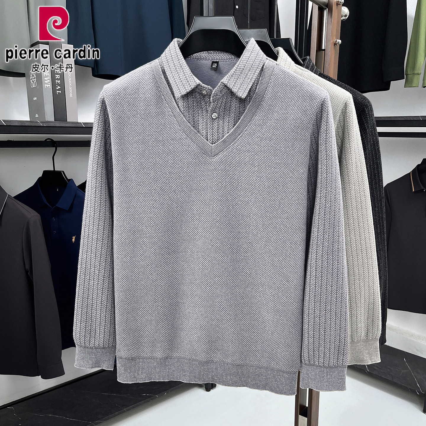 皮尔卡丹男士长袖假两件T恤