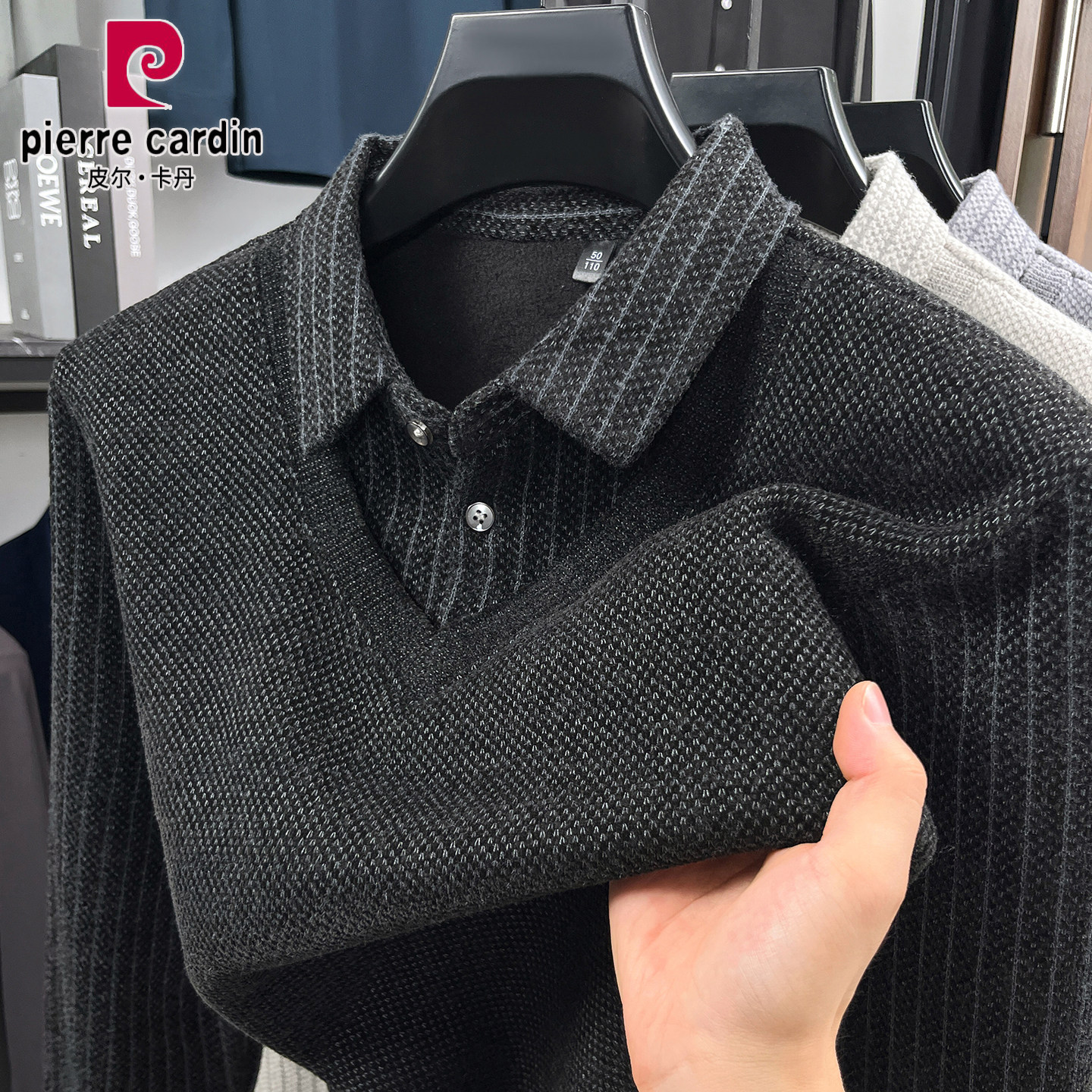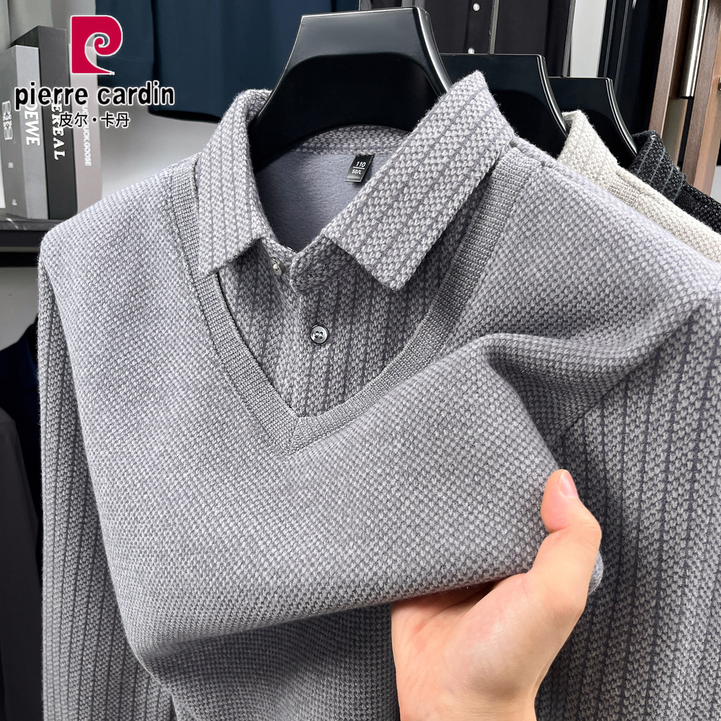 皮尔卡丹正品男士长袖假两件T恤2025秋冬新款翻领休闲男t恤打底衫