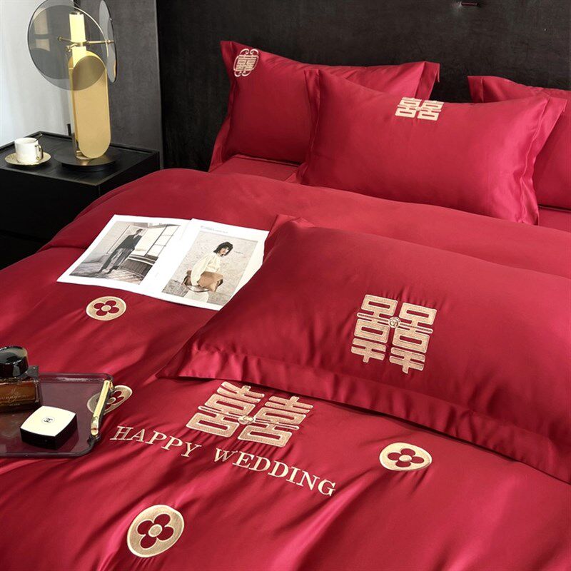 结婚床上用品四件套婚庆大红色婚嫁床单新婚被套婚房婚礼出嫁