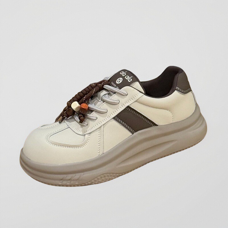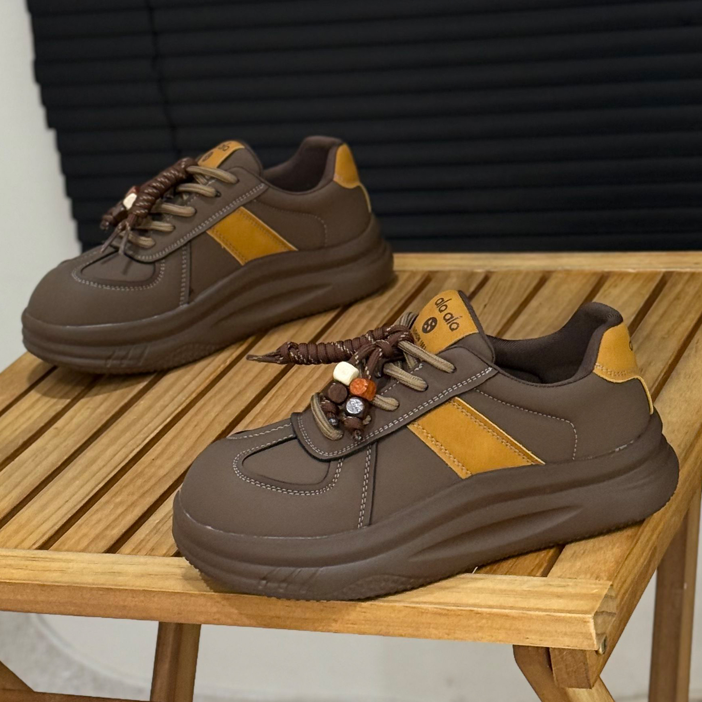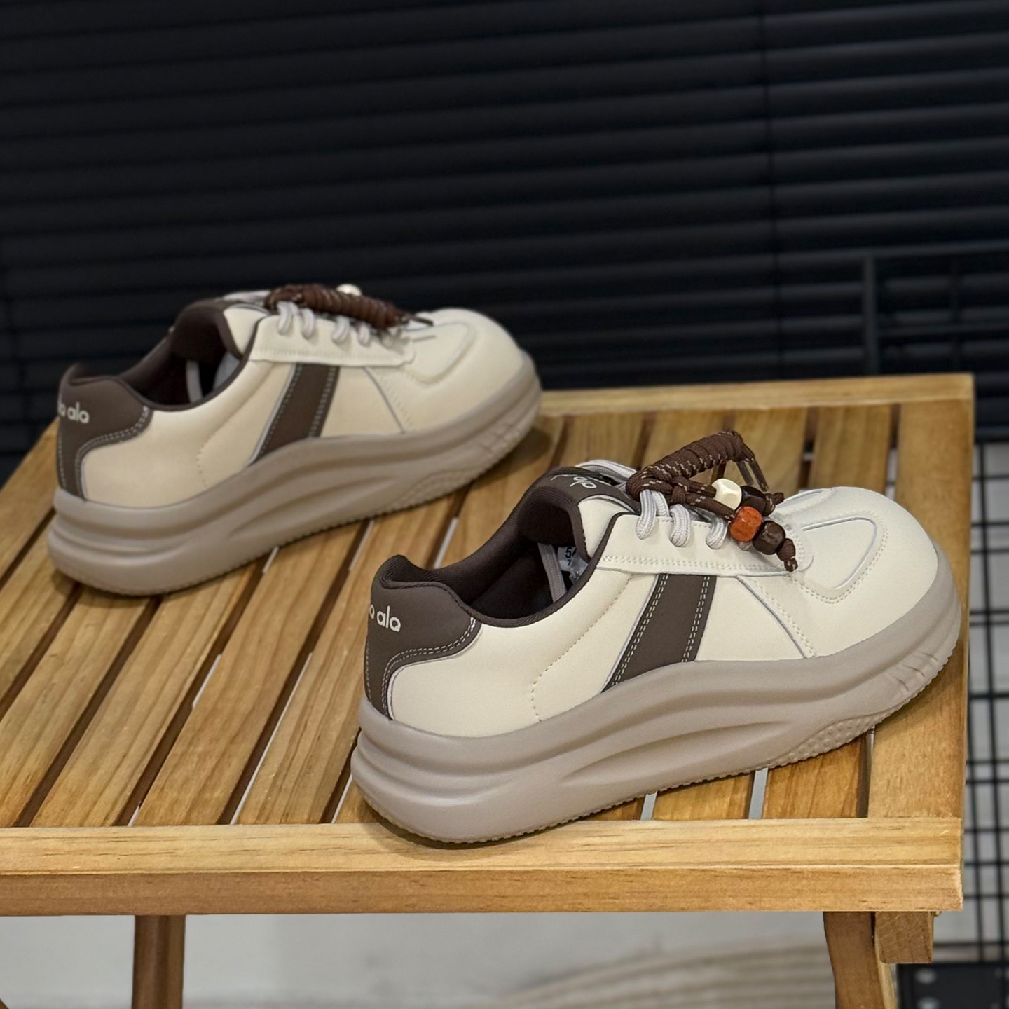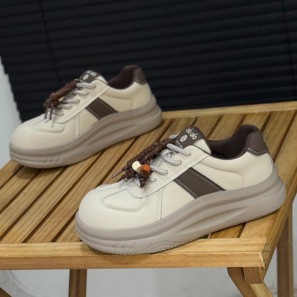 韩版厚底小白鞋女2025秋季新款时尚翘头面包鞋系带饼干鞋休闲板鞋