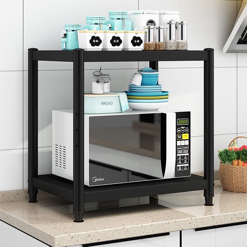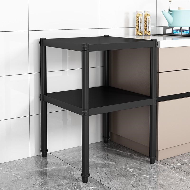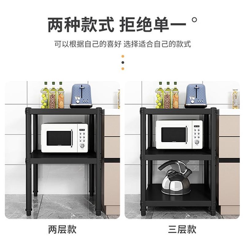 黑色厨房置物架落地两层家用收纳架微波炉架子烤箱储物柜简易锅架