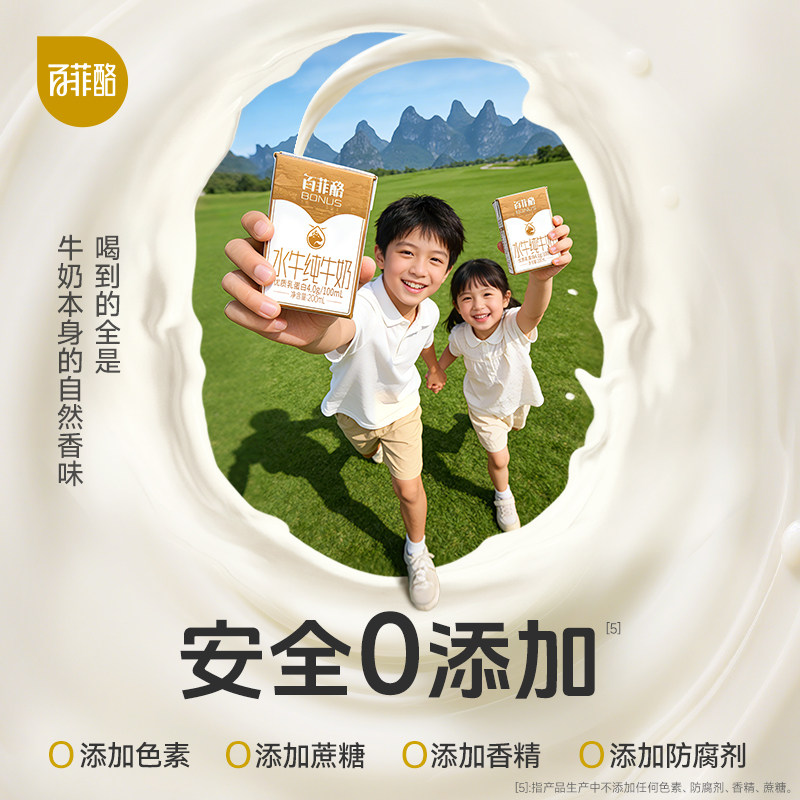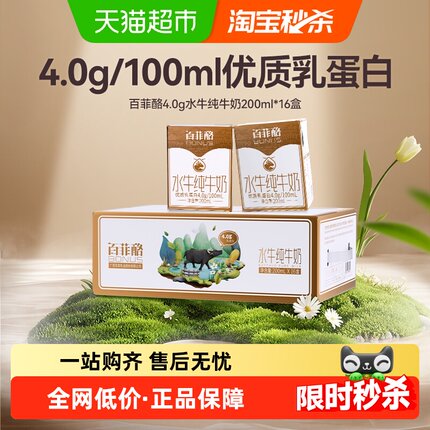 【下拉详情页享优惠】百菲酪4.0g水牛纯牛奶200ml*16盒儿童牛奶