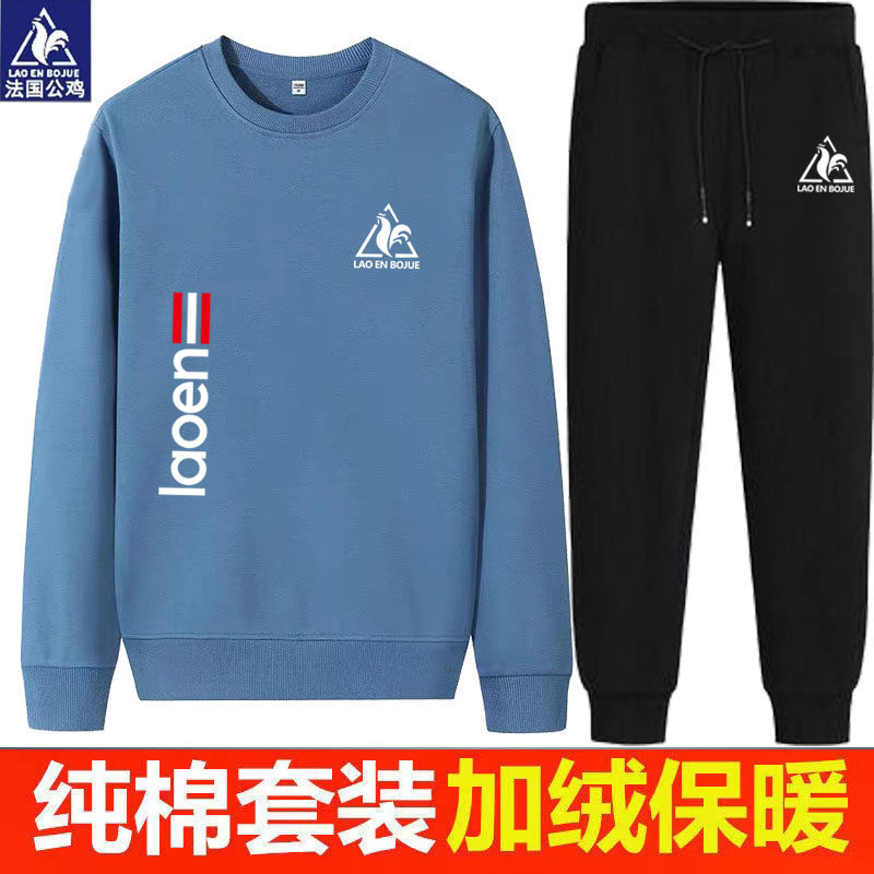 纯棉运动卫衣套装男潮流春秋款圆领卫衣宽松冬季加绒长裤子俩件套