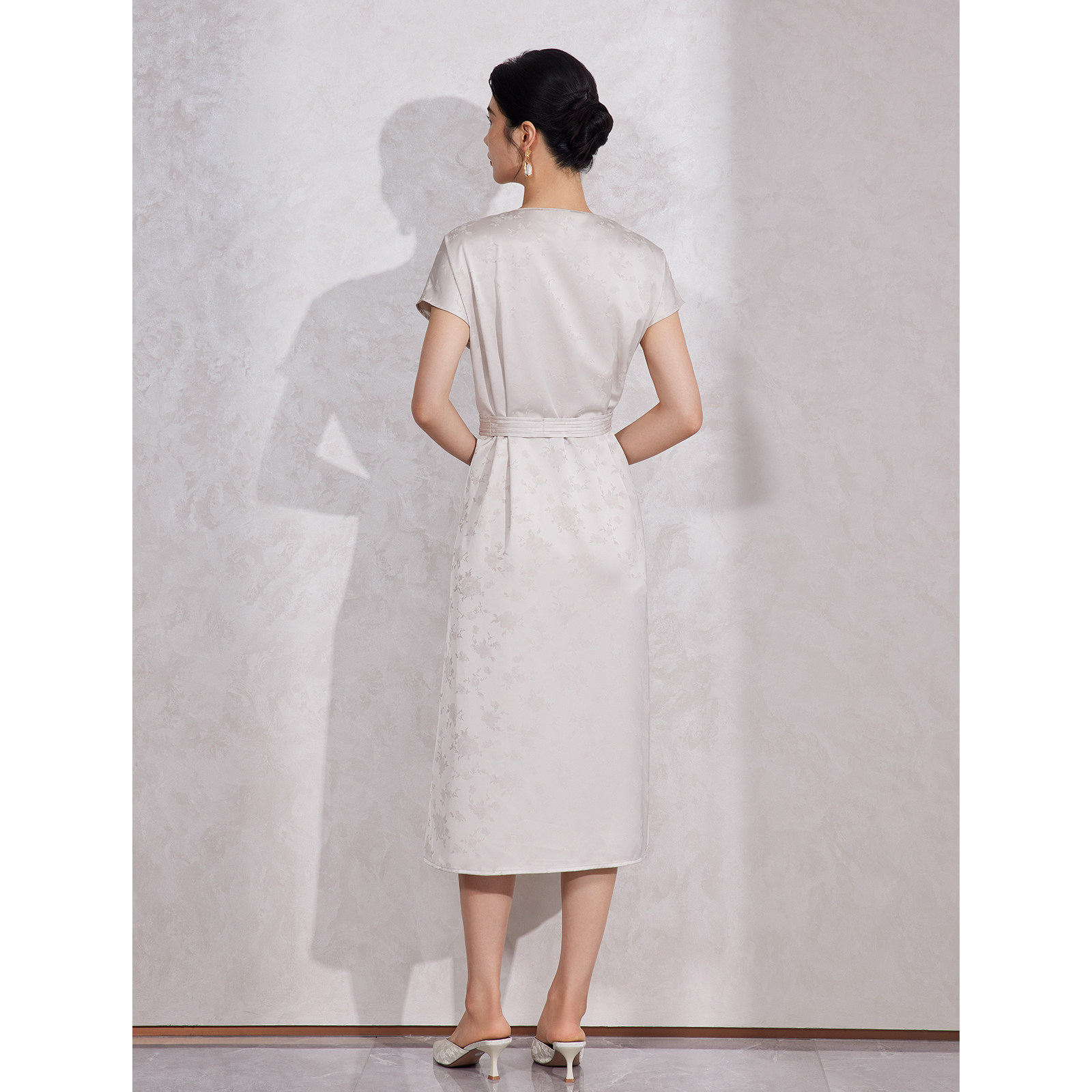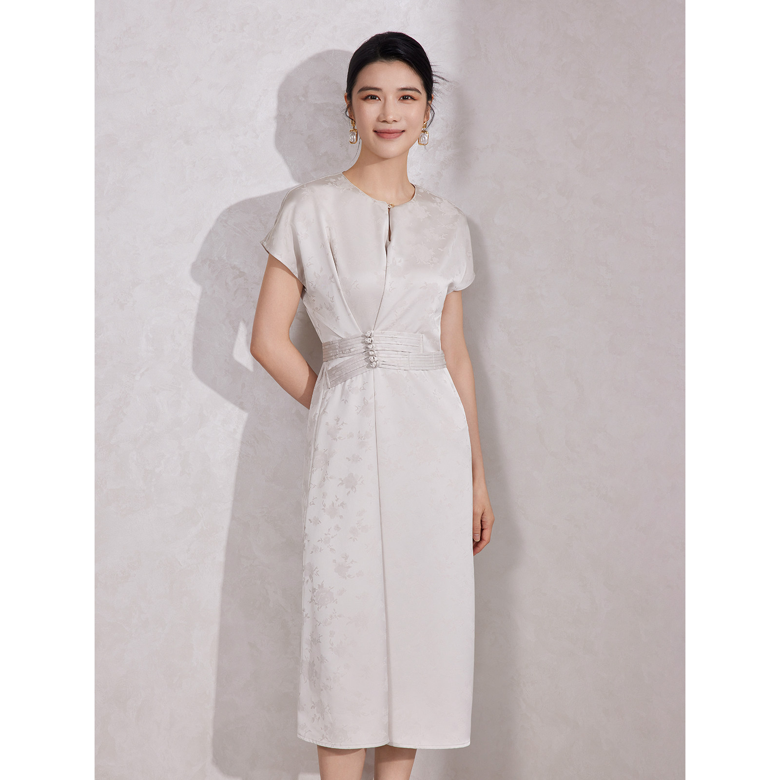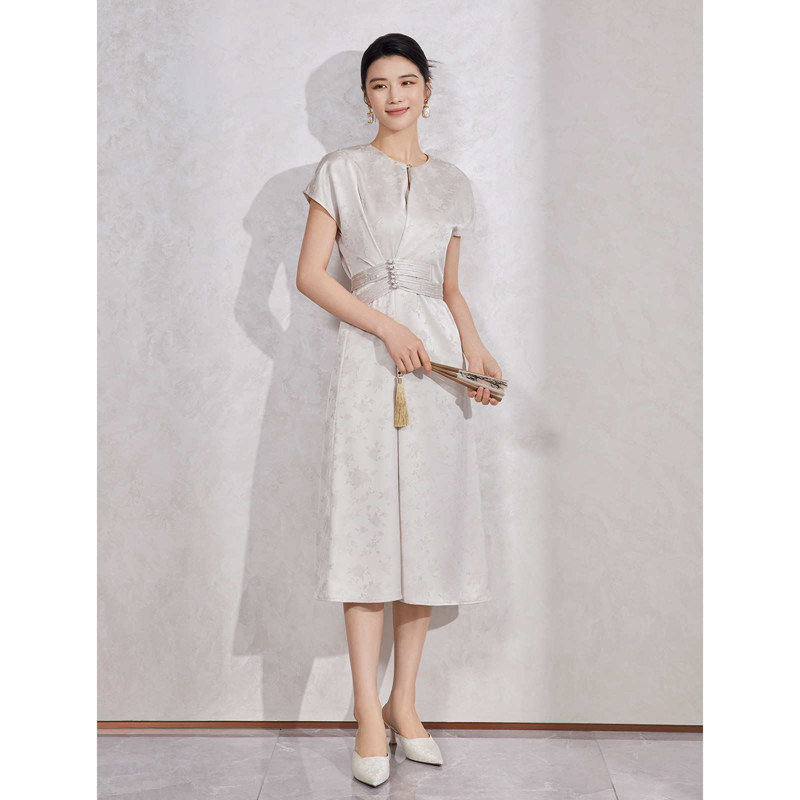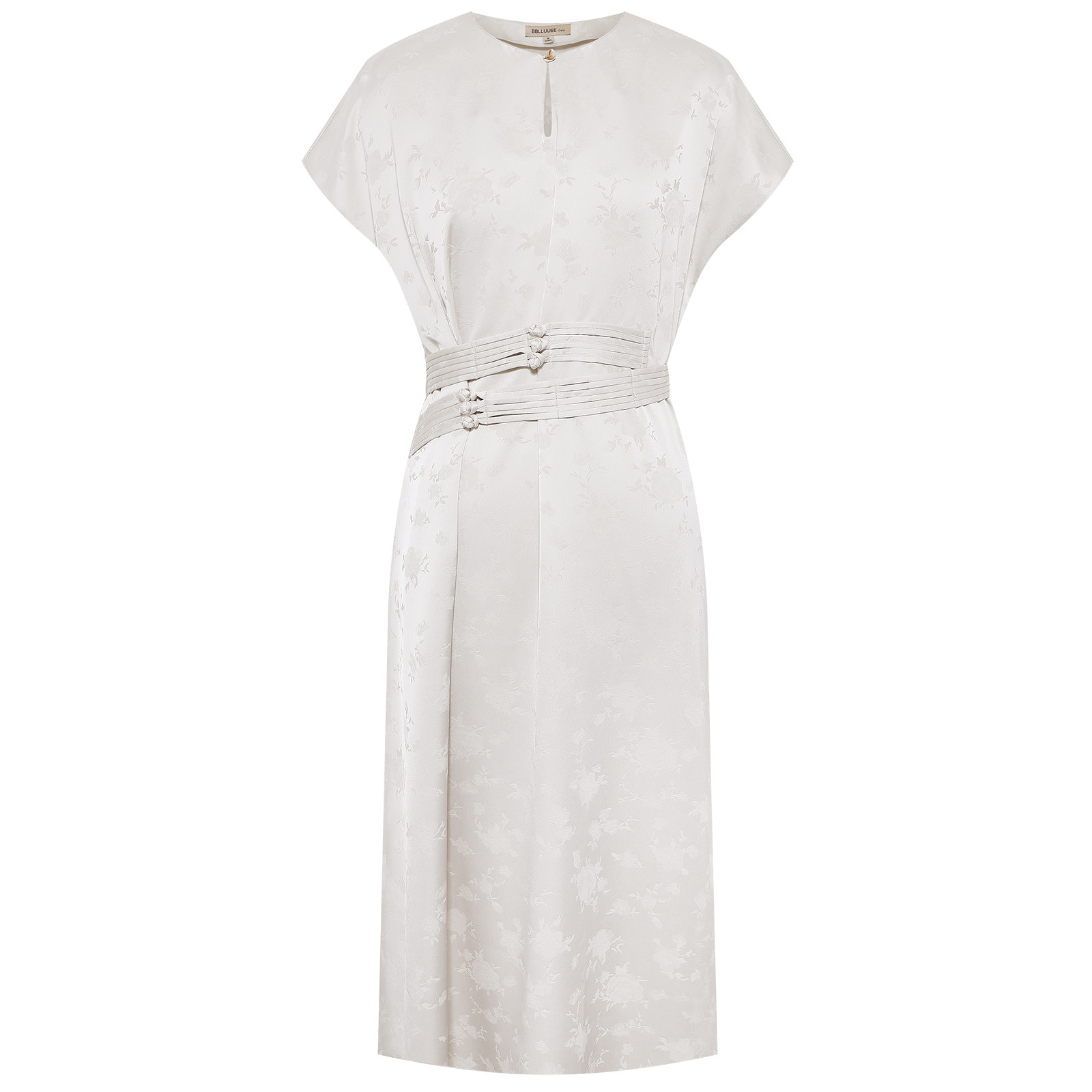 BBLLUUEE粉蓝衣橱2025夏装新款国风气质提花缎面连肩盖袖连衣裙女