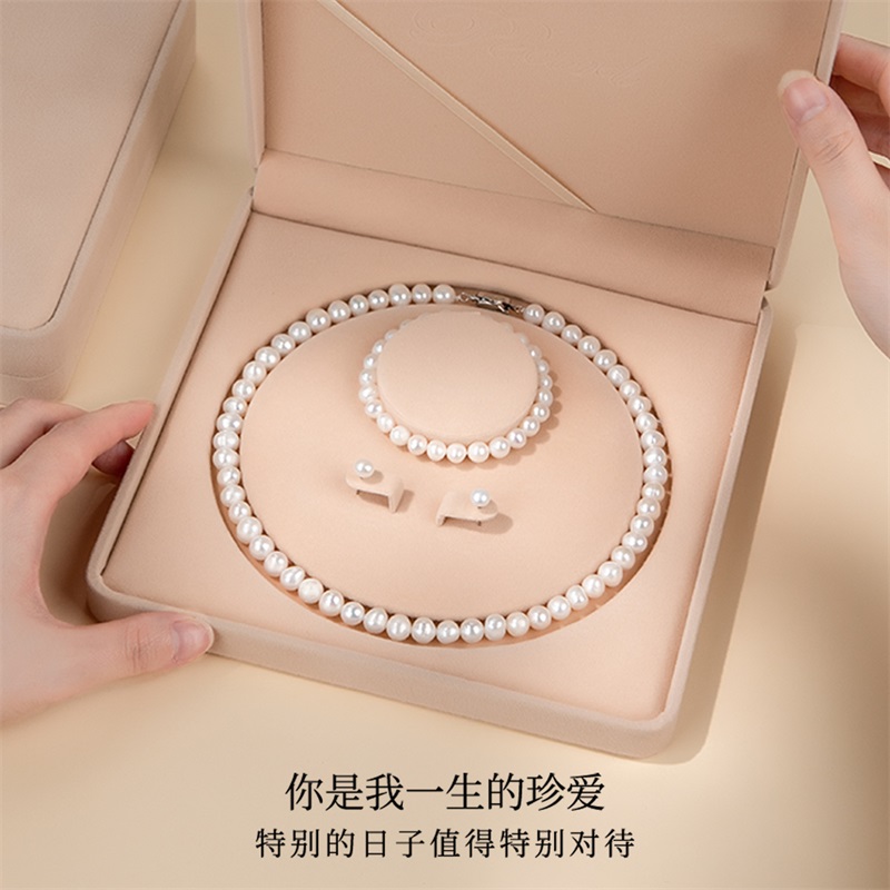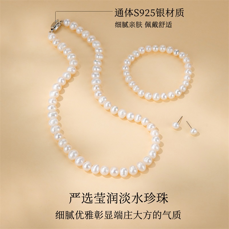天然淡水珍珠项链手链耳环套装首饰三件套首饰母亲节礼物送妈妈