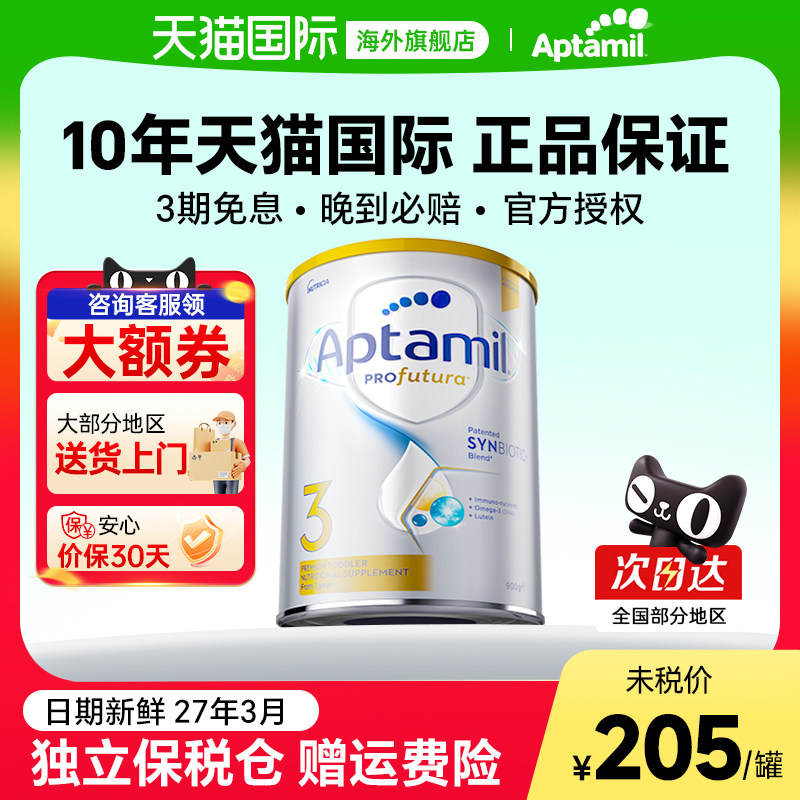 澳洲爱他美白金版3段宝宝婴儿奶粉三段1-3岁900g官方旗舰店澳爱