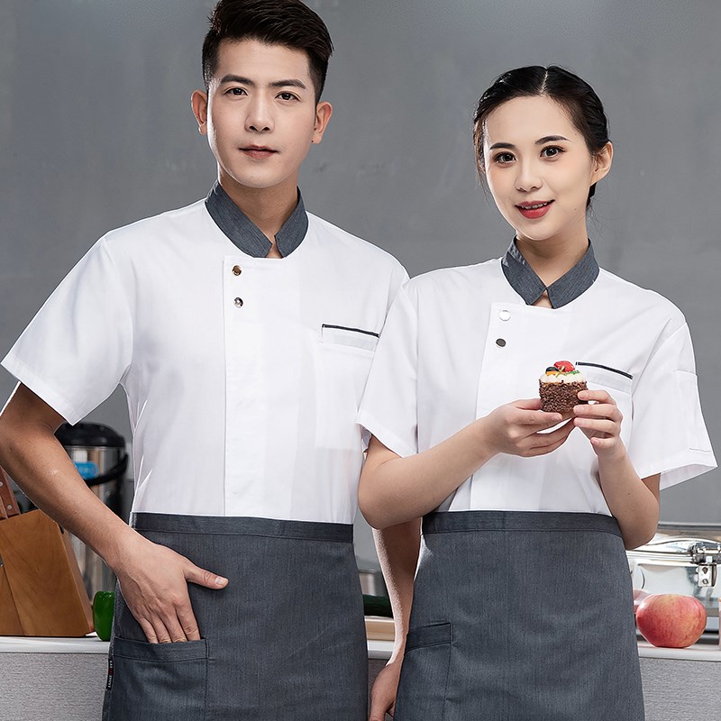 夏季厨师工作服男短袖薄款餐饮食堂饭店工衣长袖后厨房制服大码