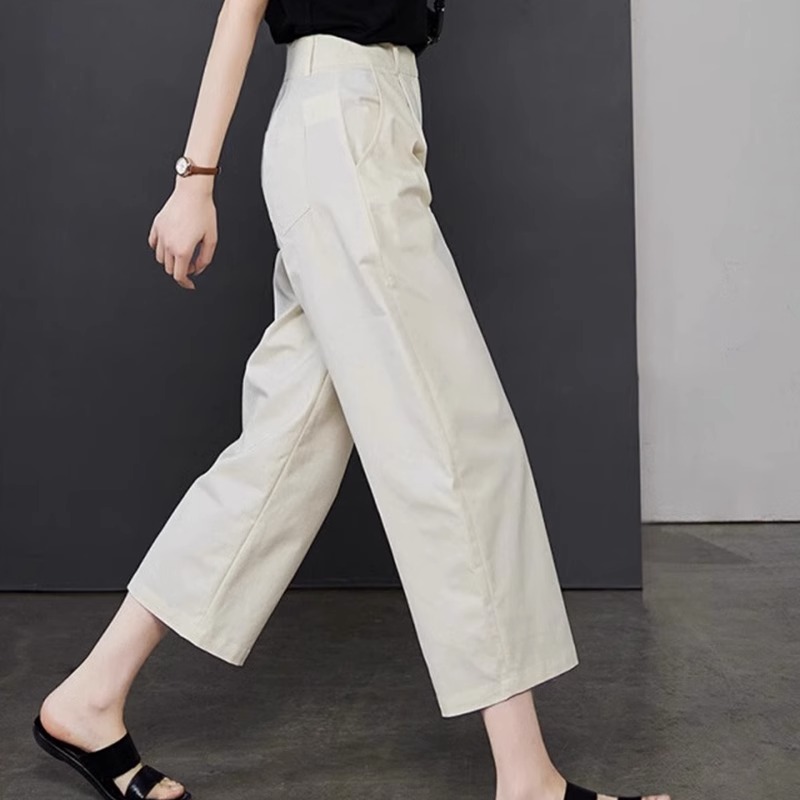 白色阔腿裤女夏季新款高腰显瘦直筒裤通勤女裤休闲裤宽松九分裤