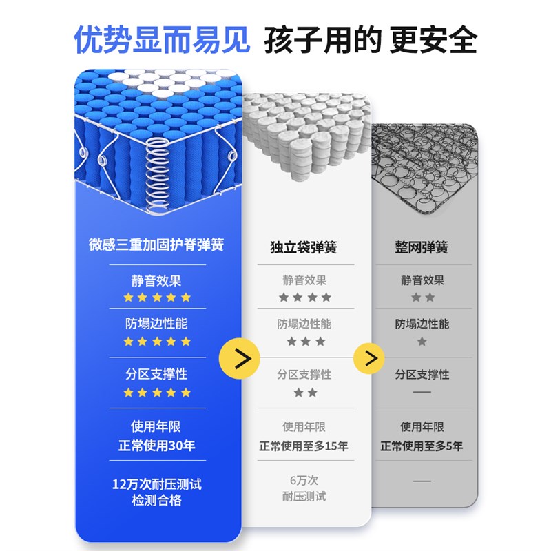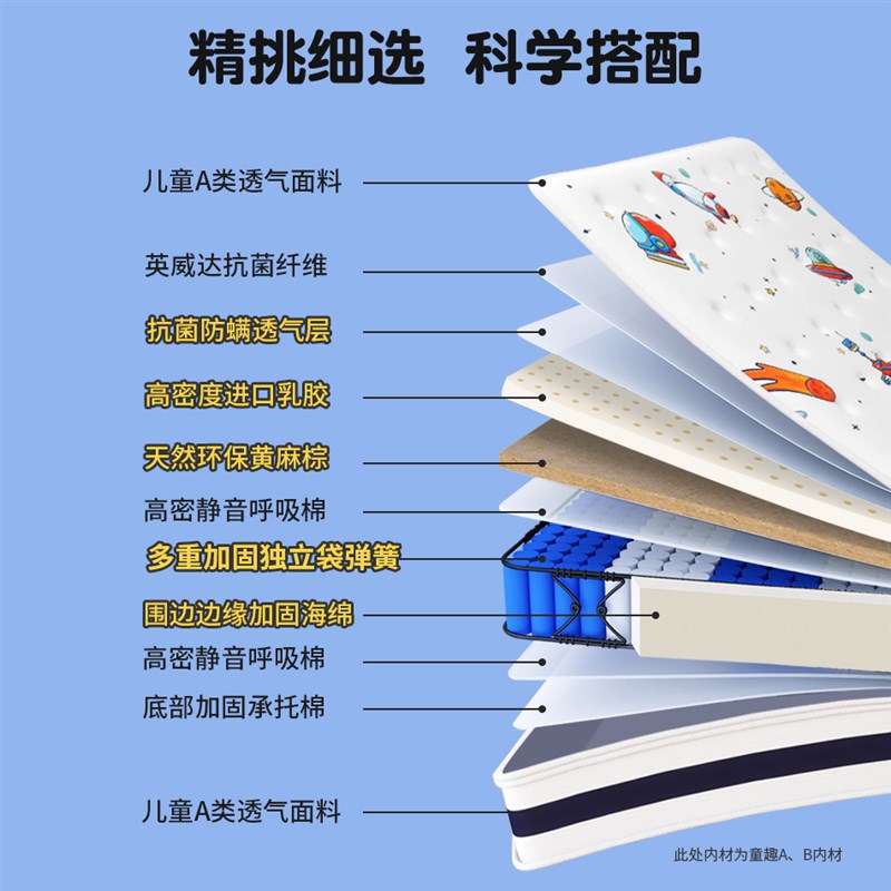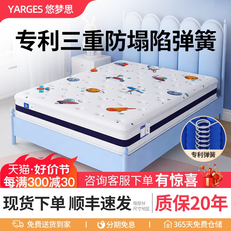 悠梦思儿童床垫乳胶独立弹簧1.5米护脊偏硬椰棕1.2席梦思家用20cm
