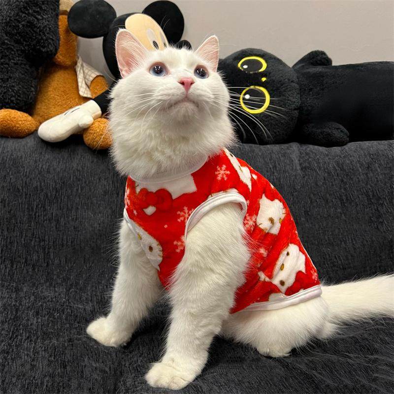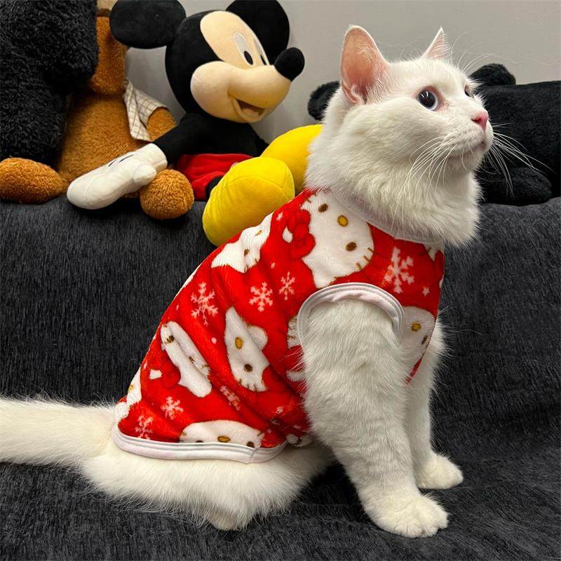 圣诞kt凯蒂猫宠物猫衣服冬季可爱新年红喜庆背心防脱不掉毛法兰绒