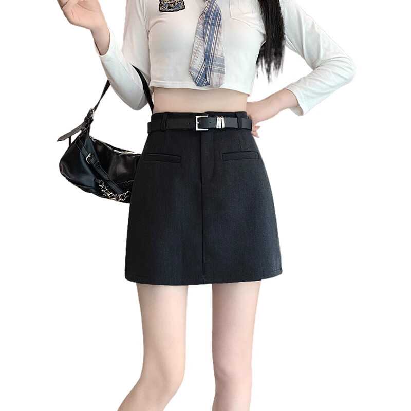 灰色西装半身裙女夏季2024新款高腰百搭显瘦包臀学院风a字短裙子