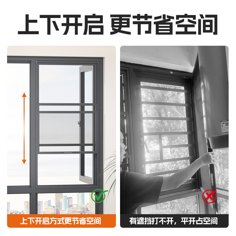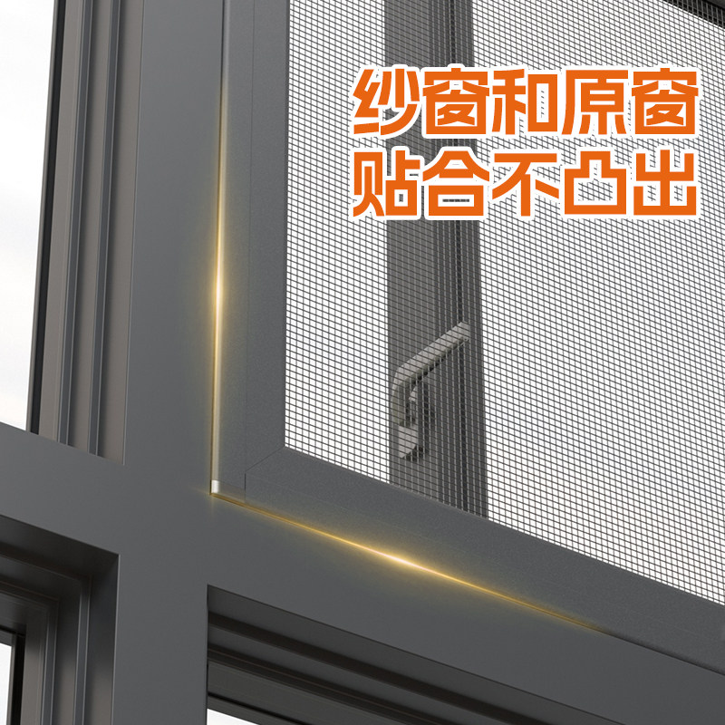 系统窗免打孔金刚网纱窗外开窗铝合金断桥铝窗户自装防盗免钉安装