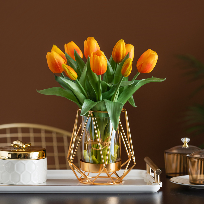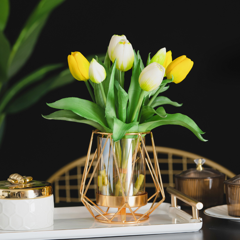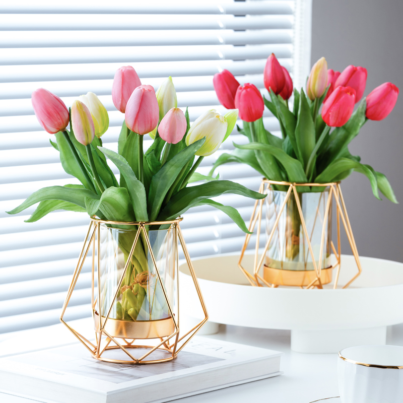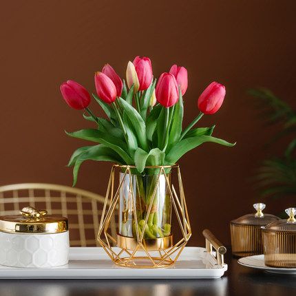 高档仿真花郁金香保湿手感假花干花摆设摆件室内盆栽插花花束客厅