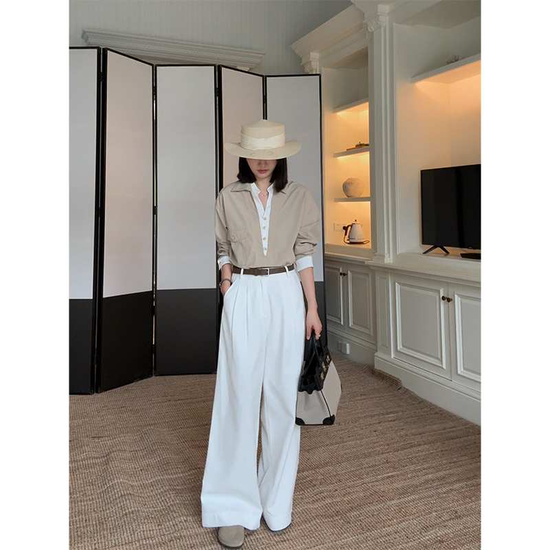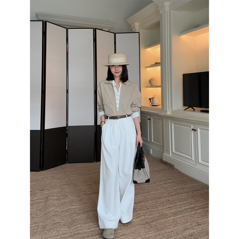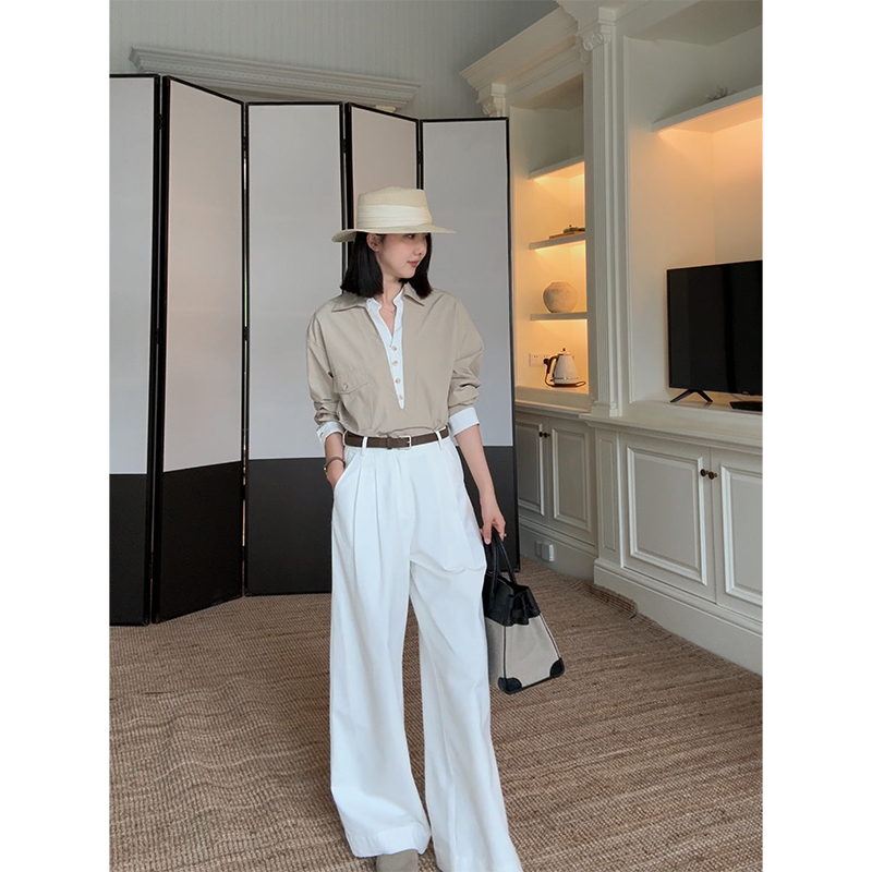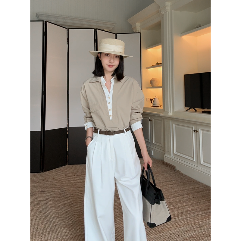 郭九九呢 天丝棉宽松显瘦假两件衬衫秋季设计感上衣百搭阔腿长裤