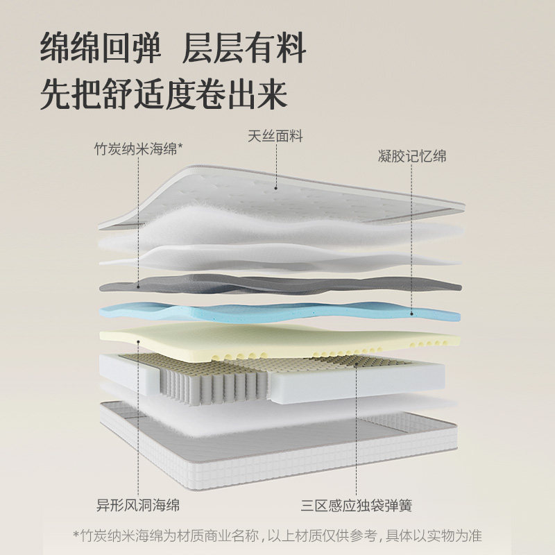 【白骑士卷装】喜临门床垫三区独袋弹簧记忆棉家用卧室双人席梦思