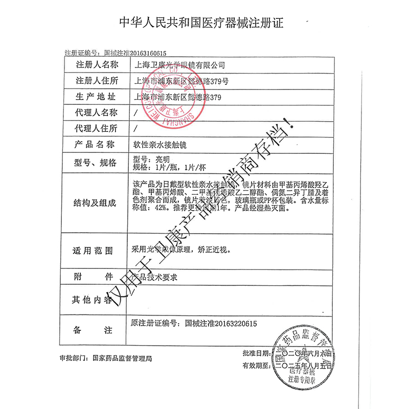 卫康亮明隐形近视眼镜年抛高度数透明隐型眼镜旗舰官网1片/2片装