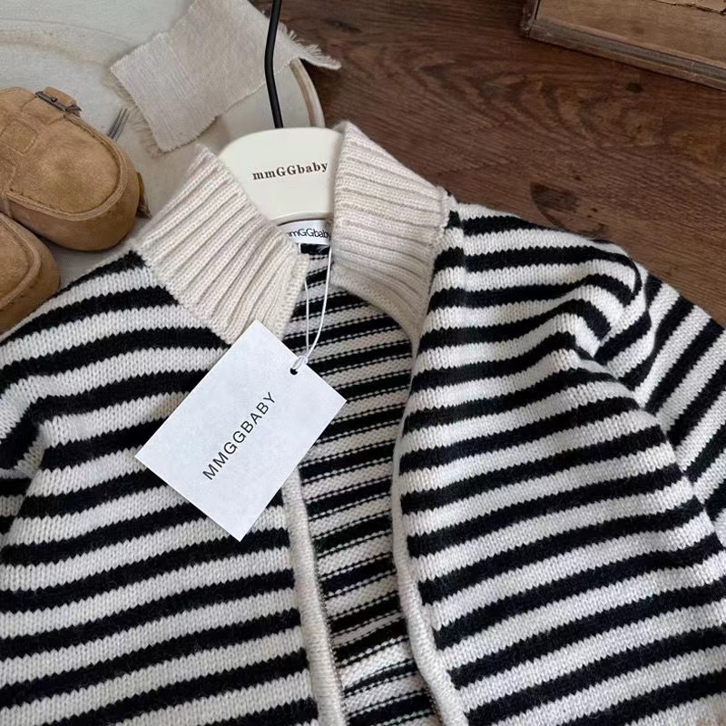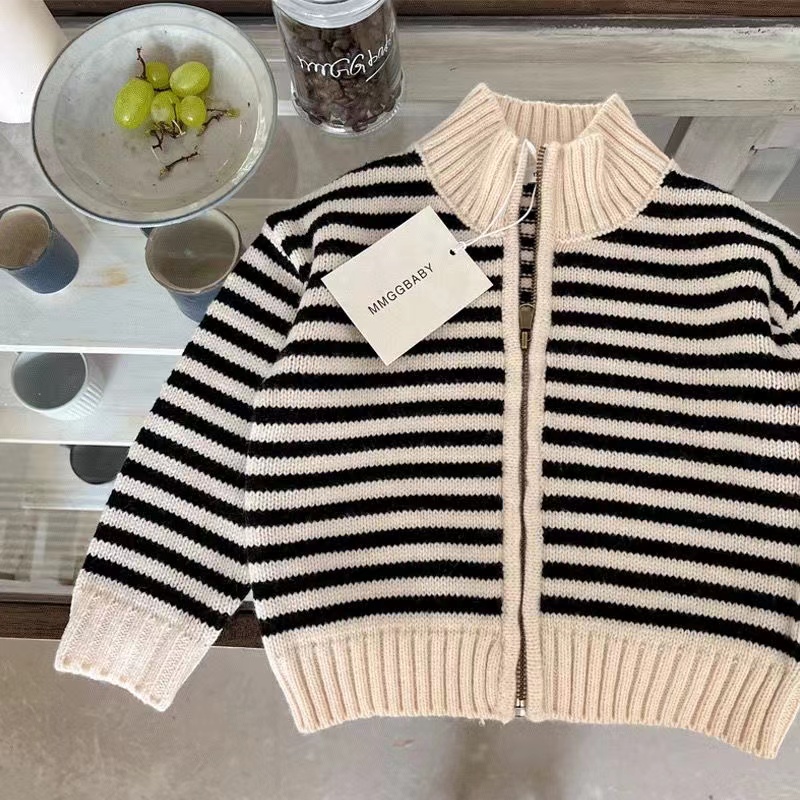 儿童毛衣2023春秋新款男女童时尚简约条纹针织开衫宝宝拉链外套