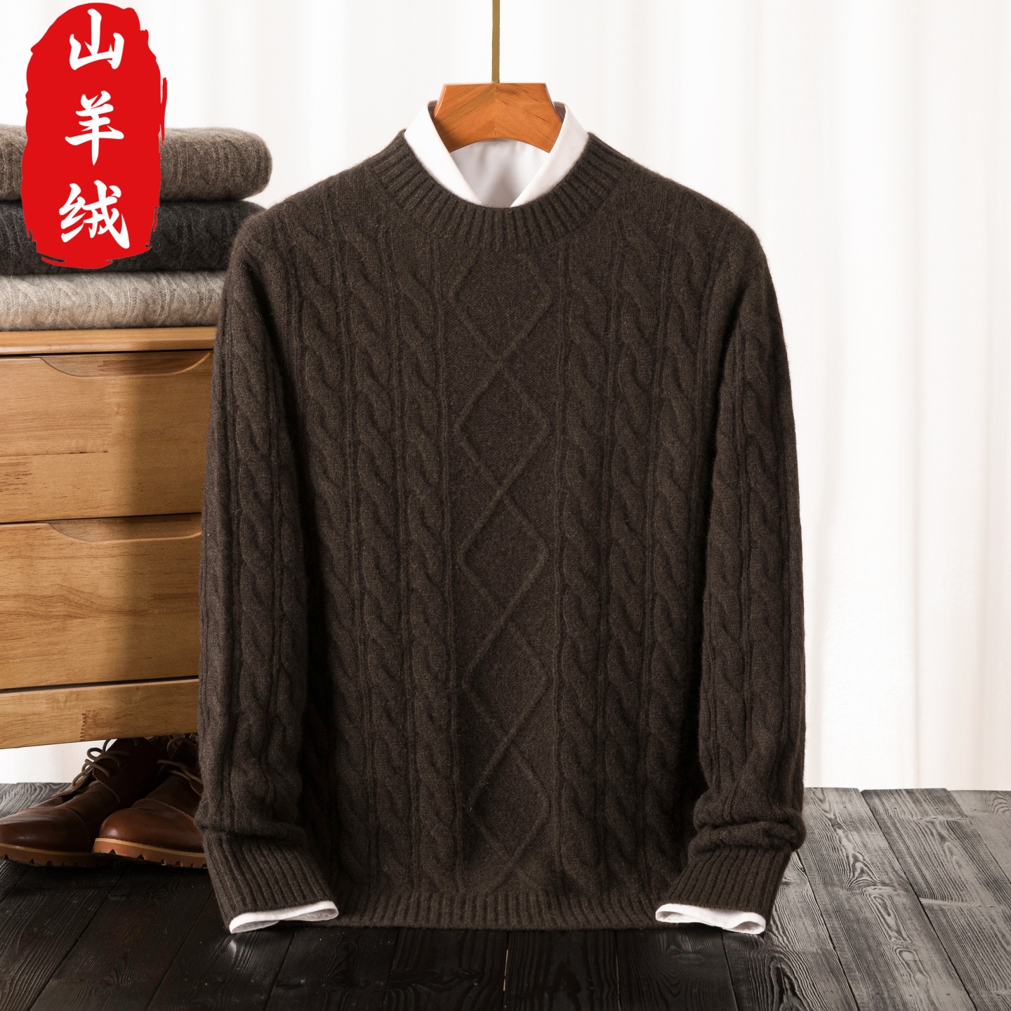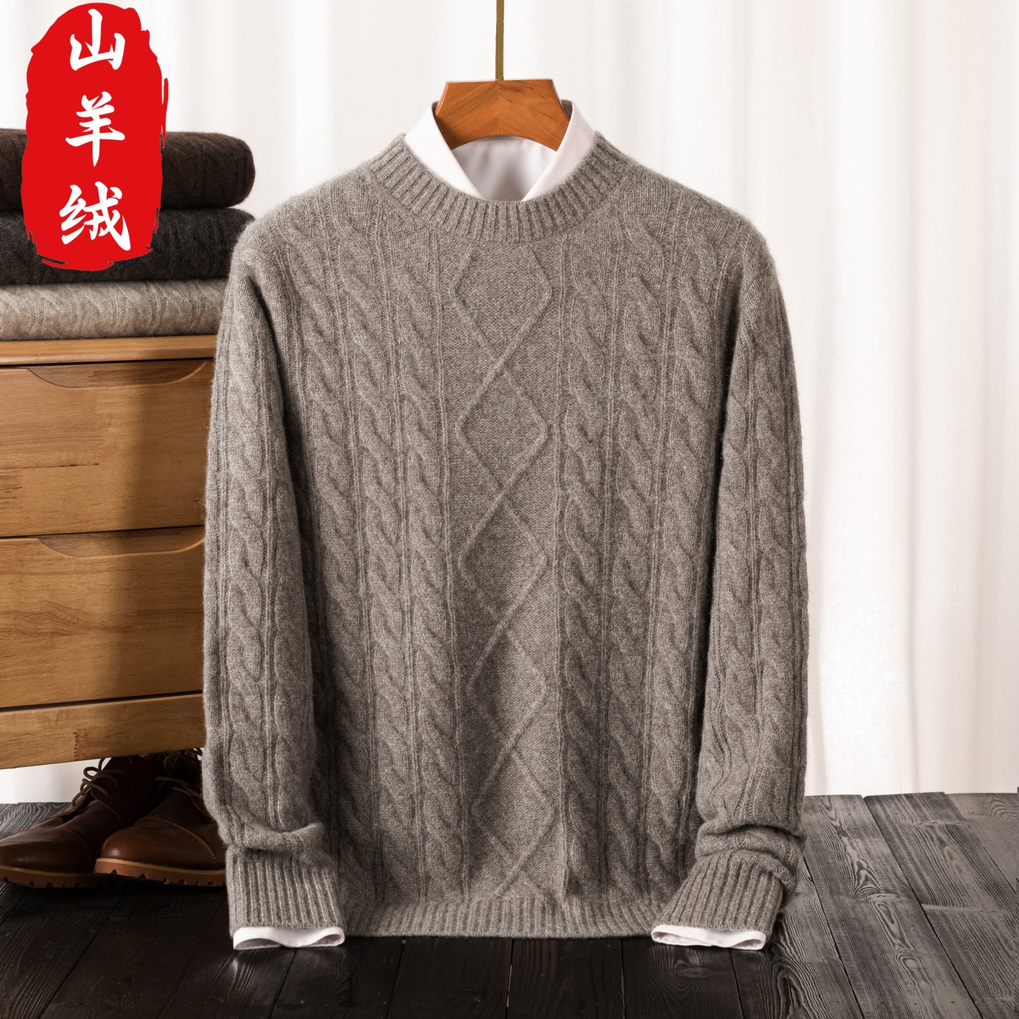 鄂尔多斯市纯山羊绒衫男士圆领绞花毛衣加厚保暖高端套头打底上衣